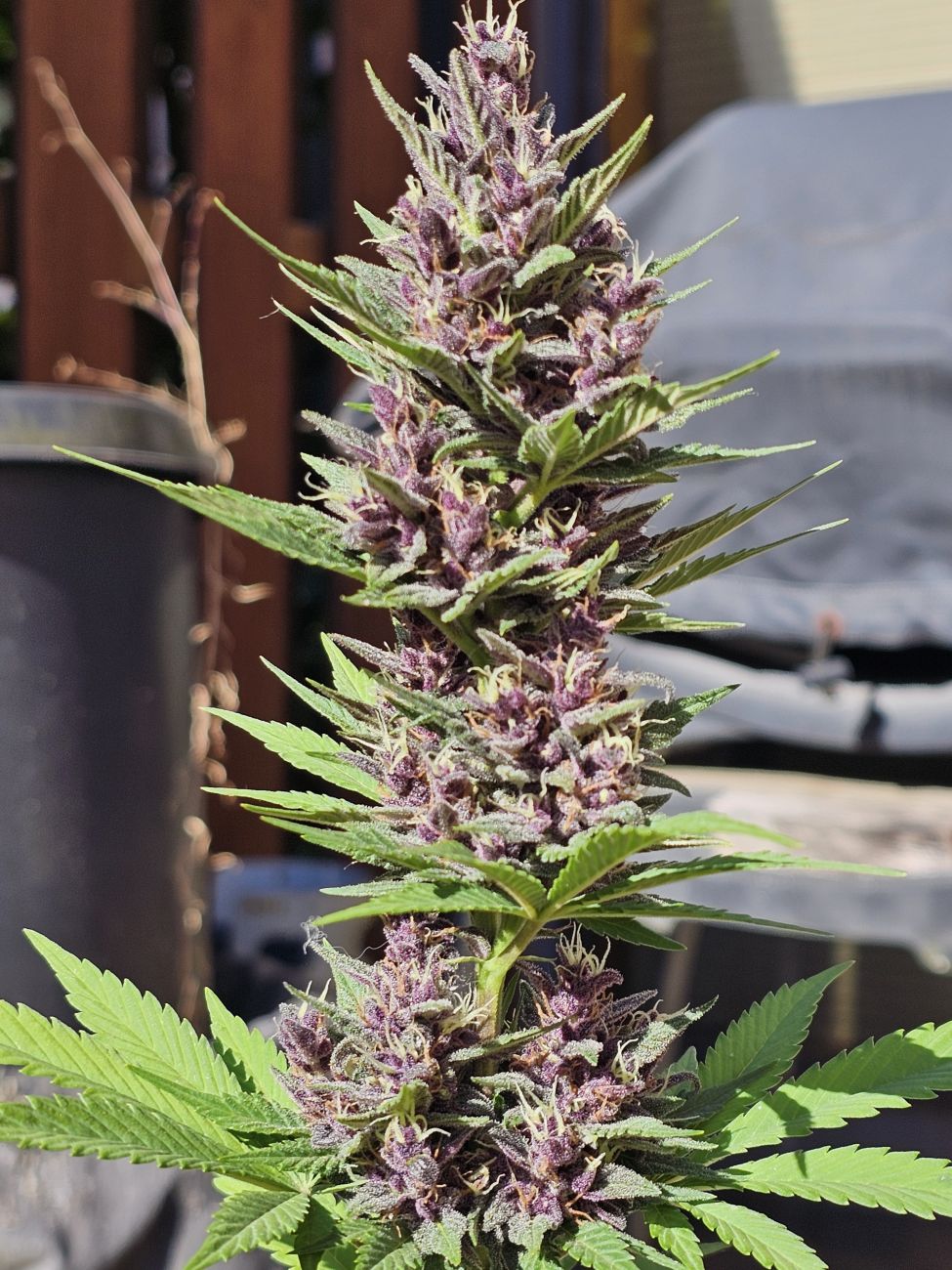 I had a lot of fun with this grow being it was my first harvest of completely purple buds. I used a 5 gallon fabric pot in Fox farm with added perlite and ( for the first time) used grow dots for her food and recharge every 1 to 2 weeks. It took exactly 76 days as I wanted to make sure my trichomes we're fully ready. I think it could have been cut down as early as day 68.