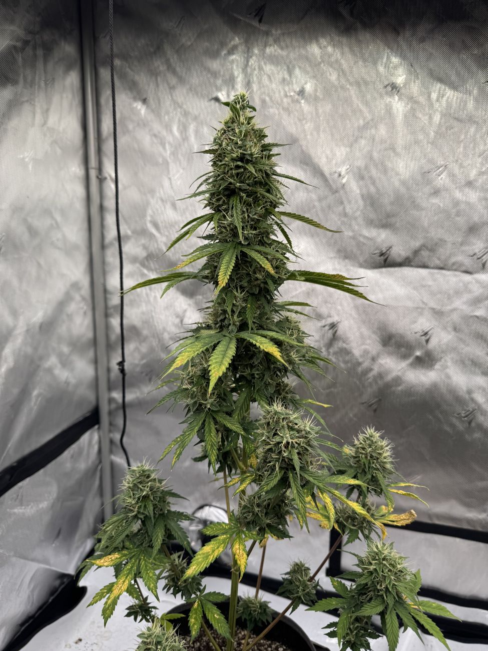 This lady grows stout and bushy, reaching around 150cm while displaying a compact yet robust appearance with wide internodal spacing. She will develop a thick main cola with fat side branches all around while not requiring much maintenance. She can produce up to 650 gr/m2 in around 10 weeks, putting her among the highest-yielding strains we’ve ever created. All throughout the flowering stage, you’ll be amazed at the insane trichome production. Especially in the final weeks when she definitely packs on some weight and you see the buds getting white in resin and reeking of cookies and gas.