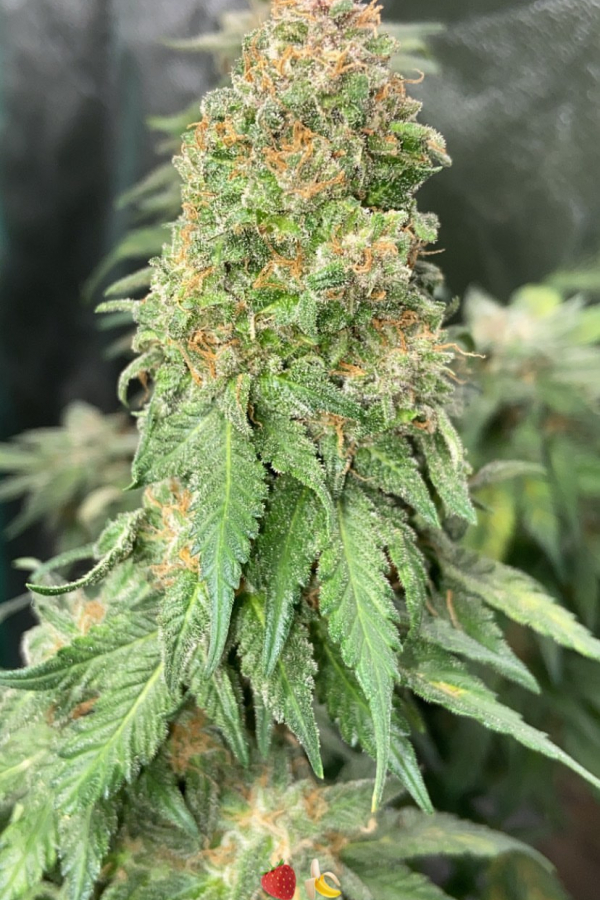 Palice se tvoří tlusté a mírně protáhlé se světle zelenou barvou a vycházejí z nich tenké světlé žlutavě oranžové chloupky a tmavě zelené listy. Očekávejte super nabobtnalé kalichy, které dávají palicím výrazný špičatý vzhled. Díky neuvěřitelné produkci trichomů palice nakonec vypadají, jako by ve stanu pro pěstování už několik dní sněžilo, a po sklizni budou cítit jako lahodná směs čerstvě sklizených jahod s pozadím zralých banánů, což z nich dělá úžasnou volbu pro výrobce extraktů a hašiše, kteří potřebují pořádné trichomy, aby mohli své produkty posunout na vyšší úroveň.
