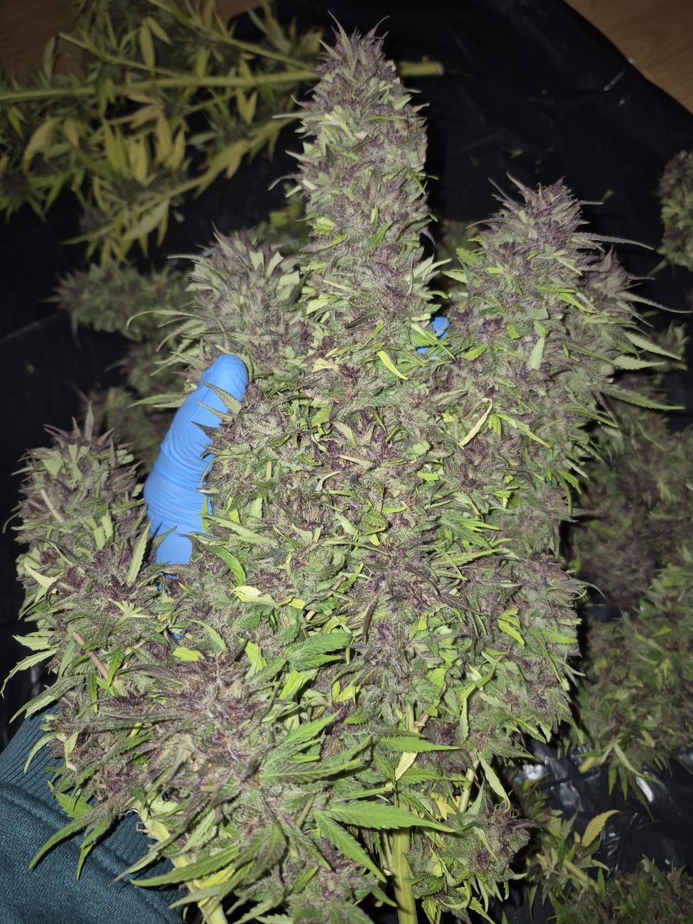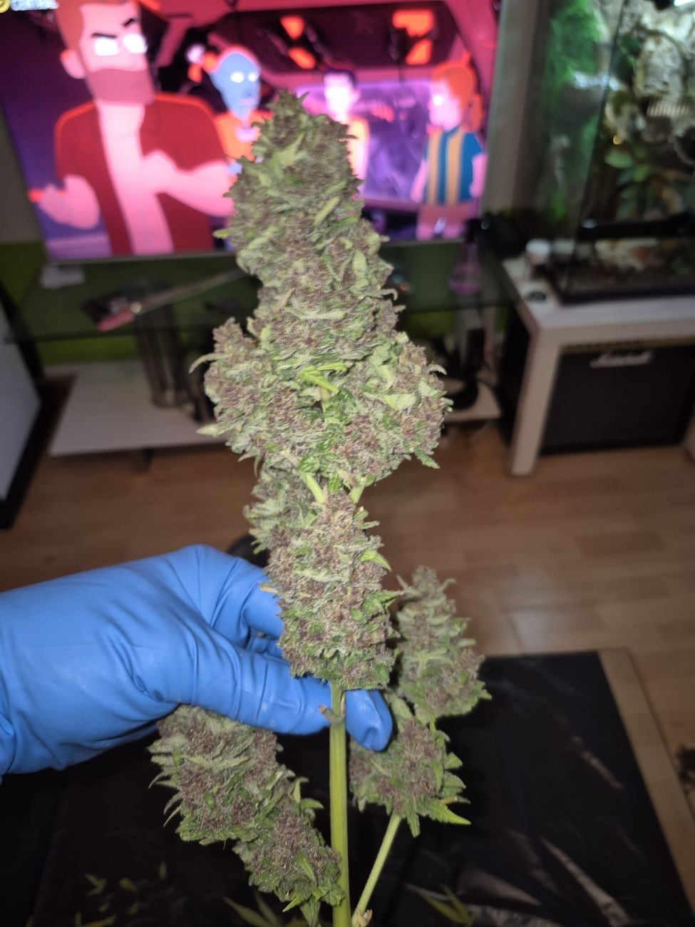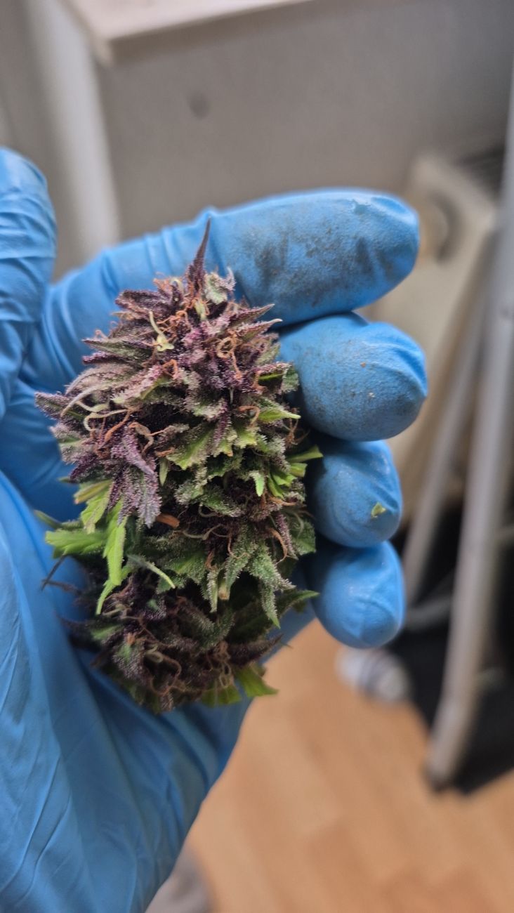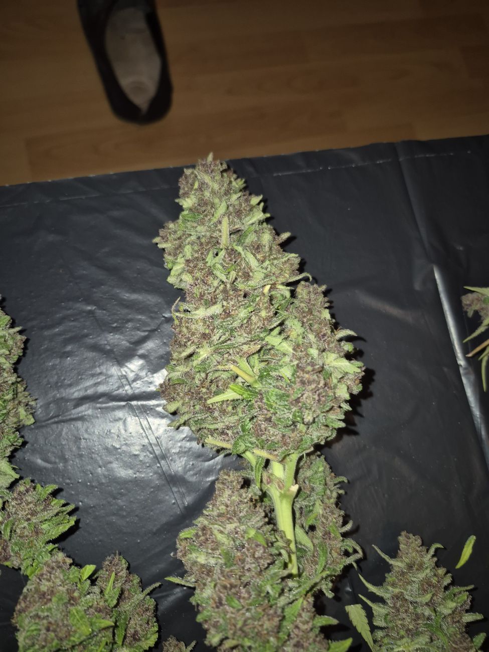 Ist mein erster Grow. Ich wollte sie zu erst draußen anpflanzen, plötzlich wurde es sehr kalt und die Pflanze ist einmal komplett draußen eingefroren. Nachdem ich sie mit reingenommen habe hatte sie erst Schwierigkeiten zu wachsen. Jetzt ist sie relativ klein jedoch nach diesen Problem sehr gut und schnell gewachsen. Geruchstechnisch sehr angenehm aber Kohlefilter im Zelt ist trotzdem nötig. Bin sehr zufrieden, dafür, dass das mein erster Grow ist . Als nächstes kommt Tropicana Cookies Auto. Diese werden direkt drinnen gegrowt.