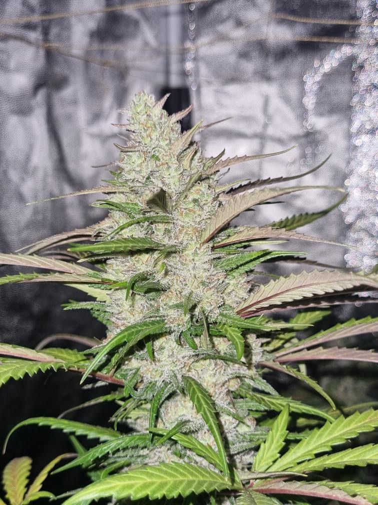 Freue dich auf einen Hauptstamm, der durchschnittlich 130 cm erreichen kann, umgeben von mehreren langen und dicken Seitenästen, die fast so groß werden können wie die Haupt-Cola. Eine wirklich buschige Sorte, die sich nicht scheut, ihre hybride Kraft zu zeigen. Diese Sorte bildet große Fächerblätter mit mehreren dünnen Fingern aus jedem Internodium aus, aus denen sich runde, golfballgroße Nugs entwickeln, die mit einem obeliskförmigen Hauptbud an der Spitze enden. Ein außergewöhnlicher Ertragsbringer, der dich mit bis zu 550 gr/m2 hochwertiger Buds belohnen wird, die perfekte Wahl für Extraktoren, die einen erstklassigen Harzproduzenten suchen.