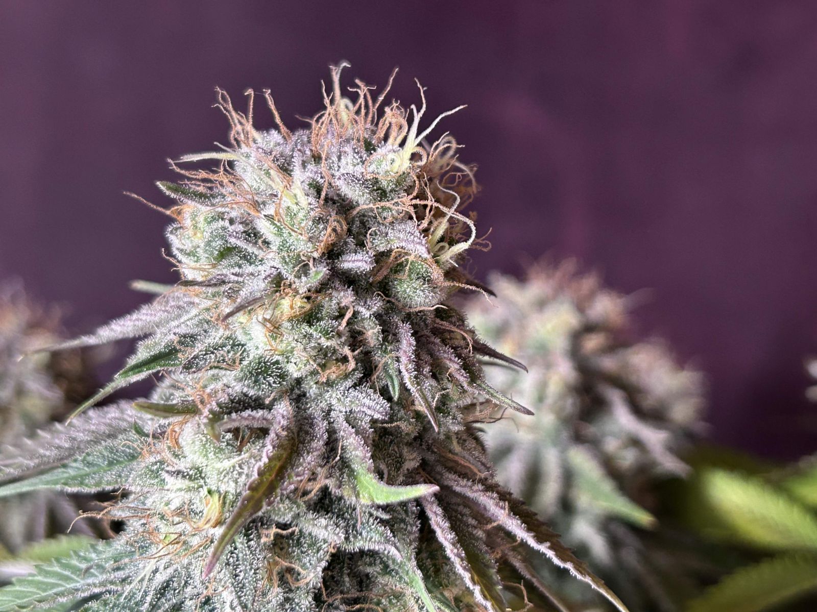 Diese superschnelle feminisierte photoperiodische Sorte bildet helle, fast neongrüne Blüten mit fetten Blütenkelchen aus, die zur Erntezeit mit Trichomen überzogen sind, was ihnen ein flauschiges, silbrig-weißes Aussehen verleiht. Orange Sherbet FF-Blüten riechen nach einer sehr ausgeprägten Mischung von Zitrusfrüchten, die man als Mandarinen- und Orangen-Smoothie mit einem sehr scharfen und sauren Hintergrund beschreiben kann, der deine Nasenlöcher hypnotisiert, sobald du den ersten Atemzug nimmst.