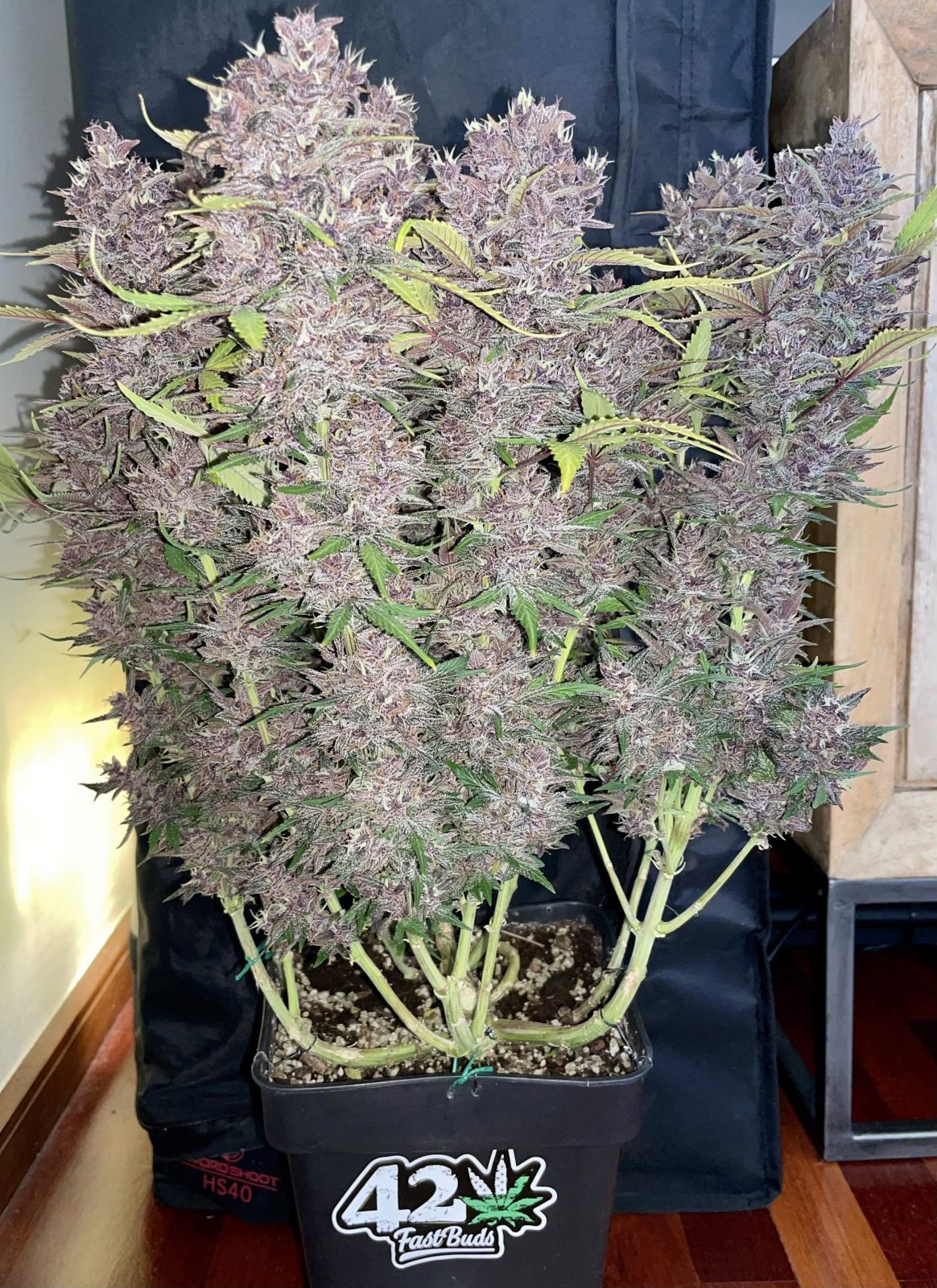 Erwarte, dass Purple Lemonade Auto-Pflanzen bis zu 80-130 cm hoch werden und im Innenbereich bis zu 550 g/m2 und im Außenbereich bis zu 300 g/Pflanze einbringen. Diese Sorte entwickelt mehrere dicke Seitenäste mit vielen Blütenständen und langen Fächerblättern, die einen tollen Kontrast zwischen dem hellgrünen Stamm, der dunkelvioletten Blütenentwicklung und den dunkleren grünen und violetten Zuckerblättern bilden, die um die Blüten herum wachsen. Eine schöne Sorte mit großen Internodienabständen und eine ausgezeichnete Option für Züchter, die bunte autoflowering Sorten suchen.