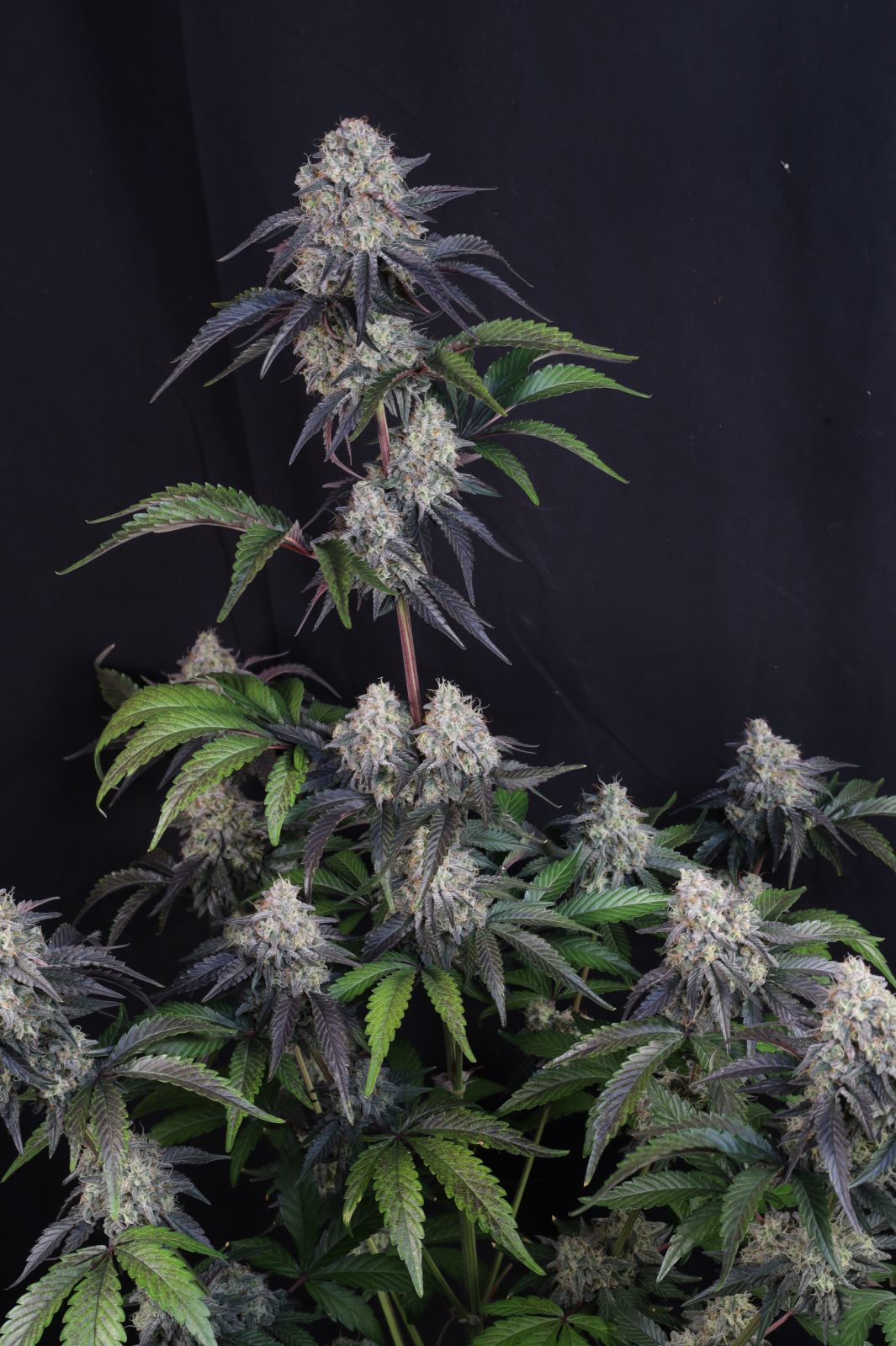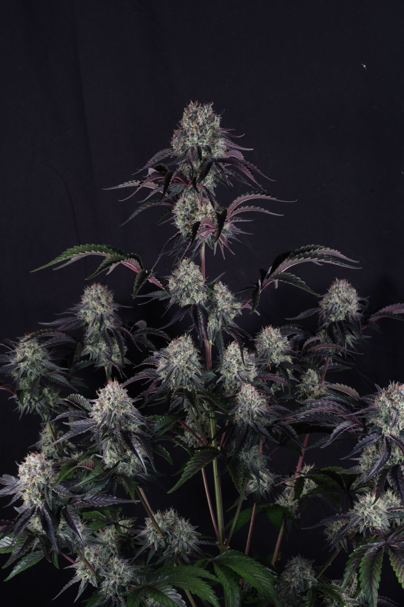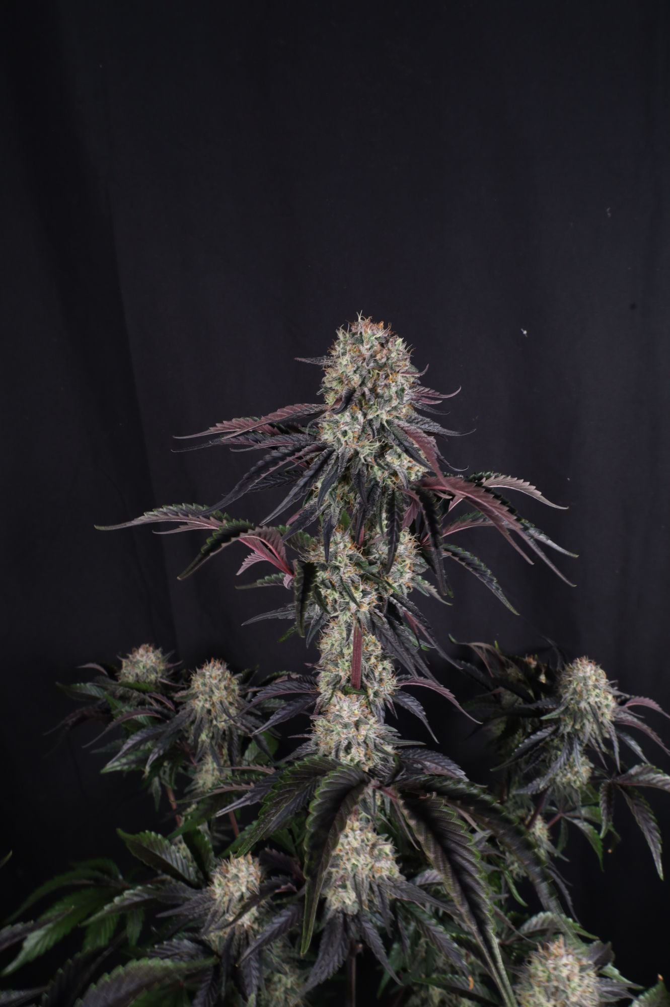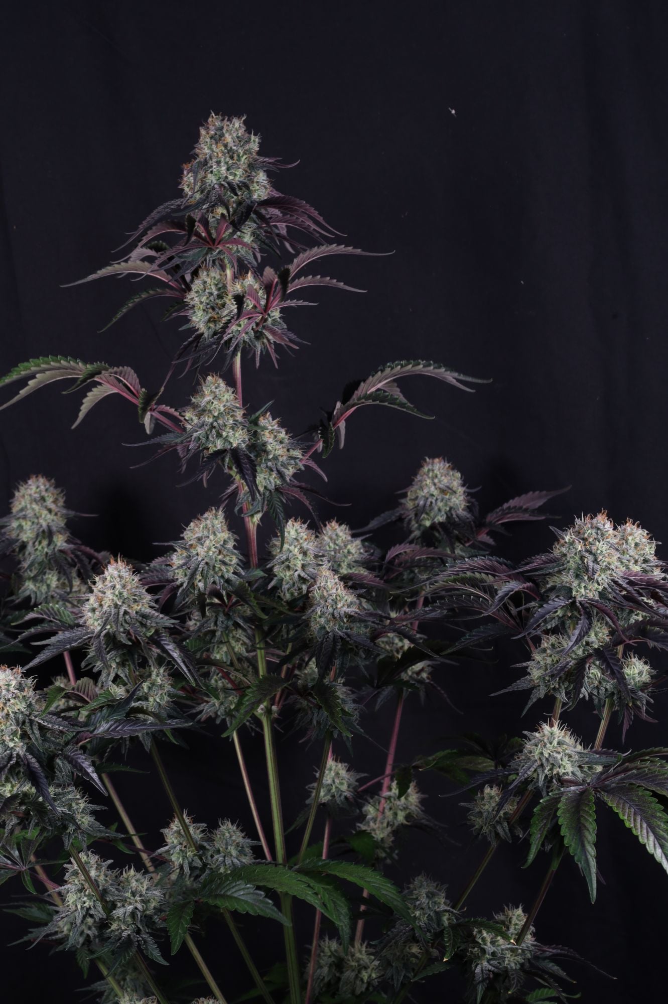 Während der Testphase wurden zwei verschiedene Phänotypen beobachtet, die beide das gleiche Terpenprofil aufweisen, sich jedoch in der Farbgebung unterscheiden. Der erste Phänotyp zeigt überwiegend grüne Blüten mit dezenten violetten oder rosa Farbakzenten, während das Laub während des gesamten Zyklus grün bleibt. Der zweite Phänotyp sorgt für einen auffälligeren Kontrast: Die Blüten bleiben größtenteils grün mit violetten Highlights, doch die Blätter entwickeln tiefschwarze Töne, was der Pflanze ein eindrucksvolles, hochwertiges Aussehen verleiht, das in jedem Grow Room hervorsticht.