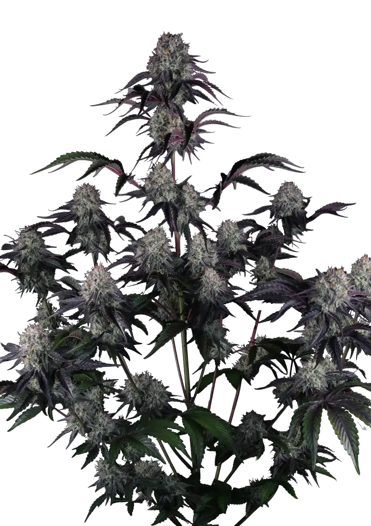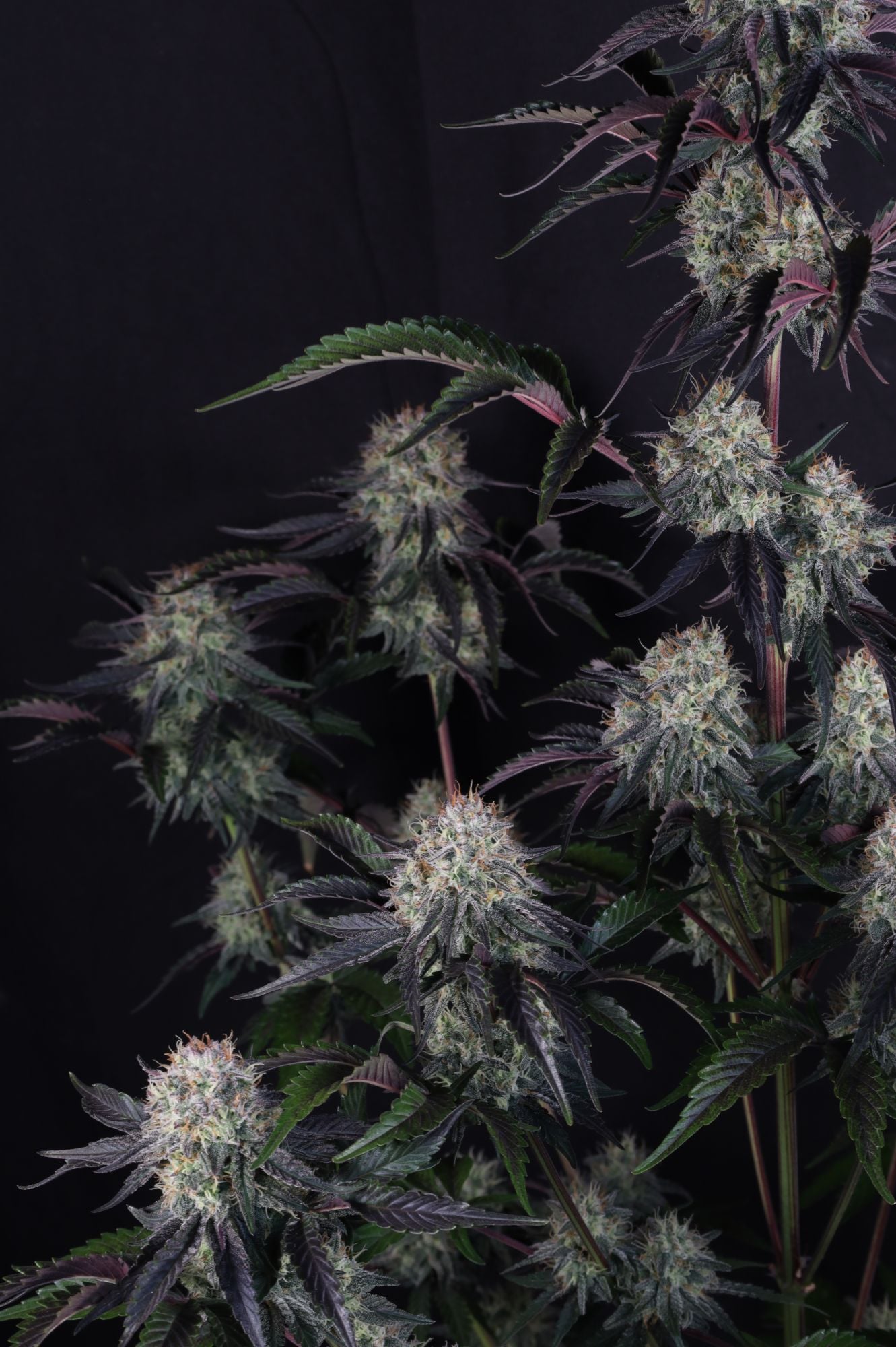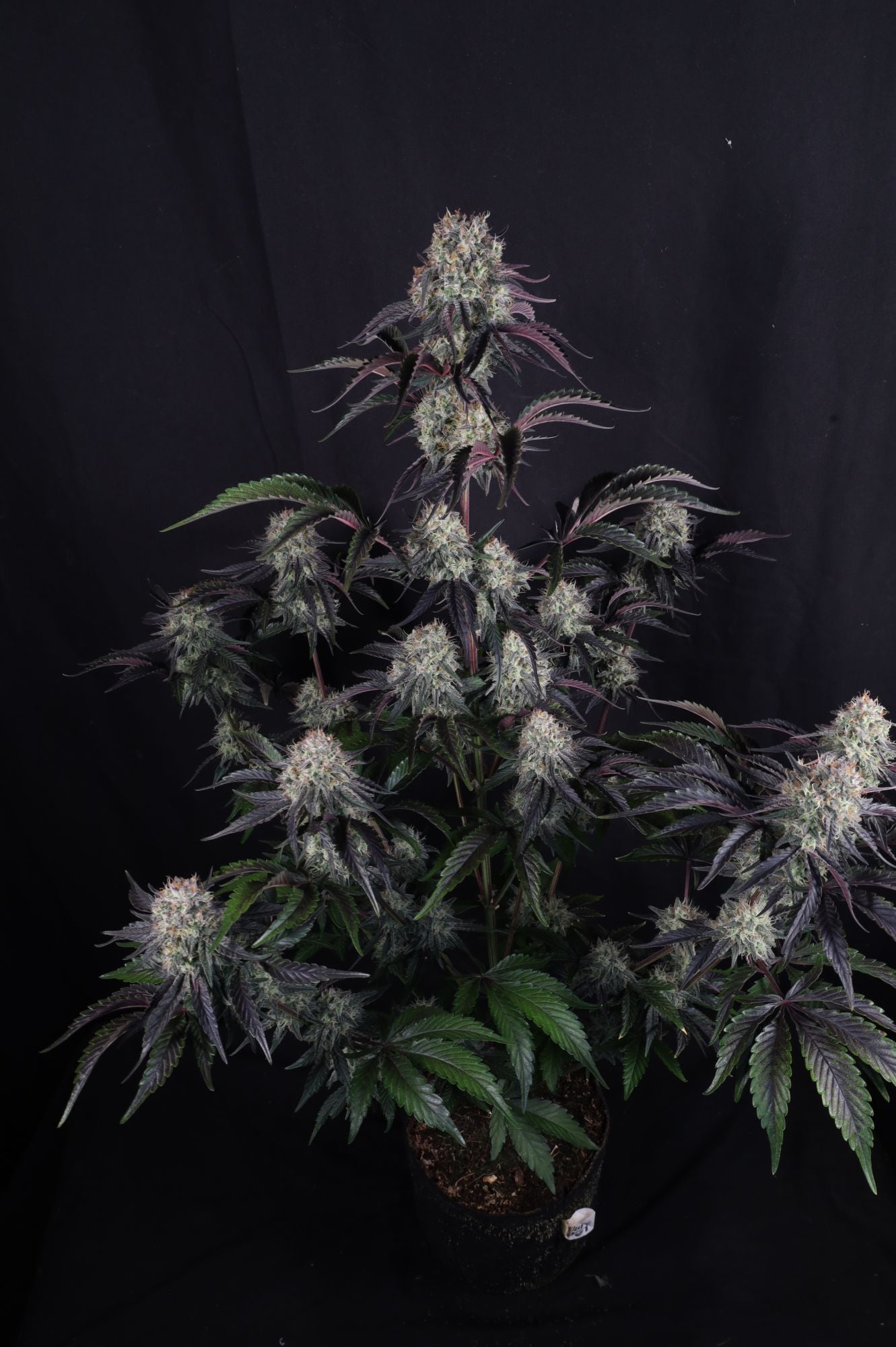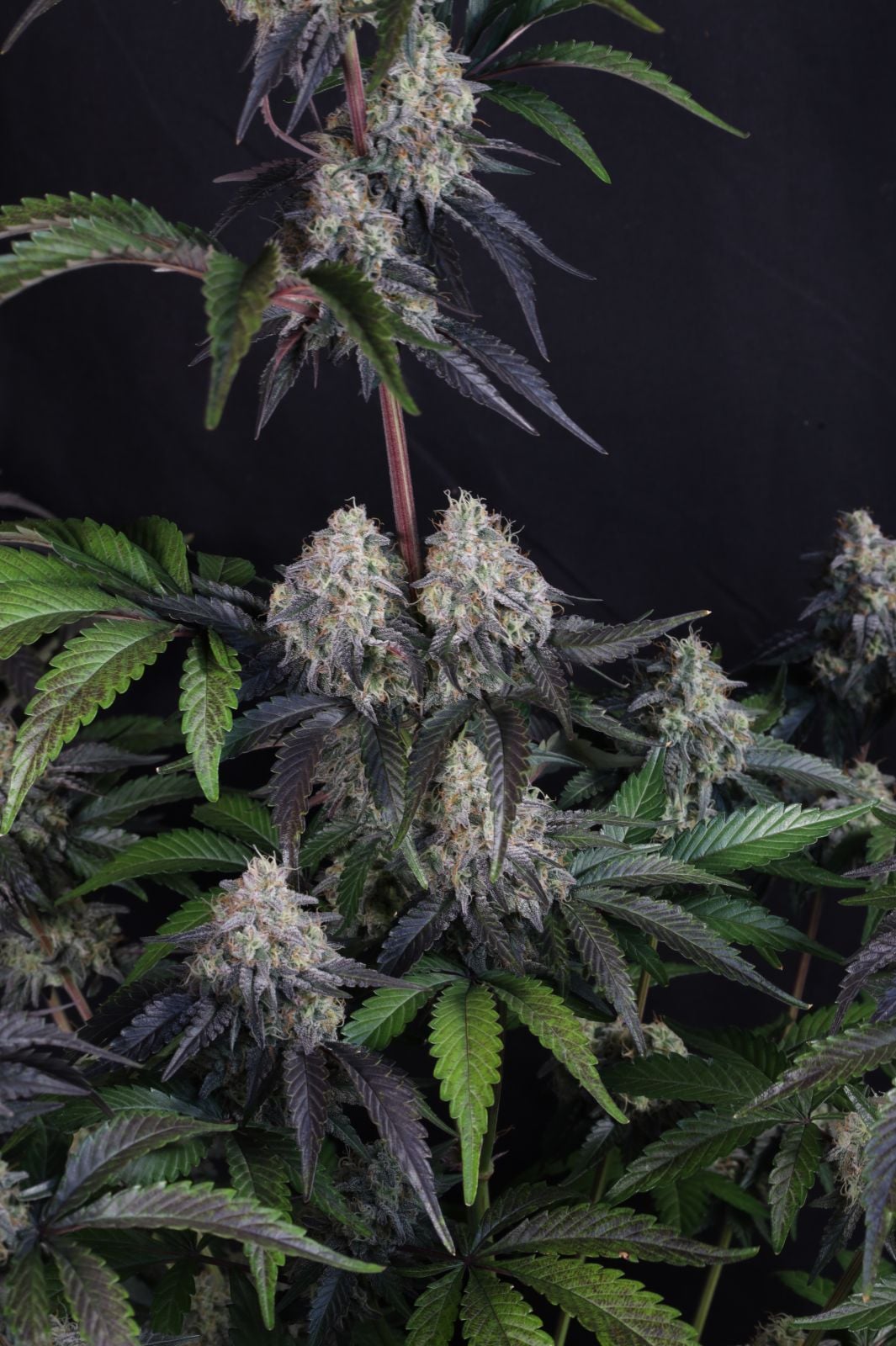Während der Testphase wurden zwei verschiedene Phänotypen beobachtet, die beide das gleiche Terpenprofil aufweisen, sich jedoch in der Farbgebung unterscheiden. Der erste Phänotyp zeigt überwiegend grüne Blüten mit dezenten violetten oder rosa Farbakzenten, während das Laub während des gesamten Zyklus grün bleibt. Der zweite Phänotyp sorgt für einen auffälligeren Kontrast: Die Blüten bleiben größtenteils grün mit violetten Highlights, doch die Blätter entwickeln tiefschwarze Töne, was der Pflanze ein eindrucksvolles, hochwertiges Aussehen verleiht, das in jedem Grow Room hervorsticht.