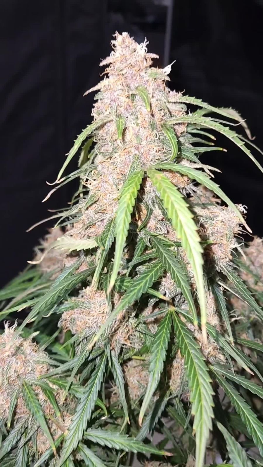 Al momento de la cosecha, los cogollos estarán completamente cubiertos con una gruesa capa de resina y pueden terminar luciendo muchos colores. Puedes esperar cogollos de color verde brillante con tonos a veces rosados, amarillos, púrpuras y rojos en todos los cogollos y el follaje que los rodea dándole ese aspecto pegajoso tan buscado. Los cálices se hinchan bastante, dando a los cogollos un aspecto gordo y puntiagudo, y tan pronto como rompas un cogollo llenarán la habitación con el olor a arándanos dulces recién recogidos que harán que a todos se les haga la boca agua.