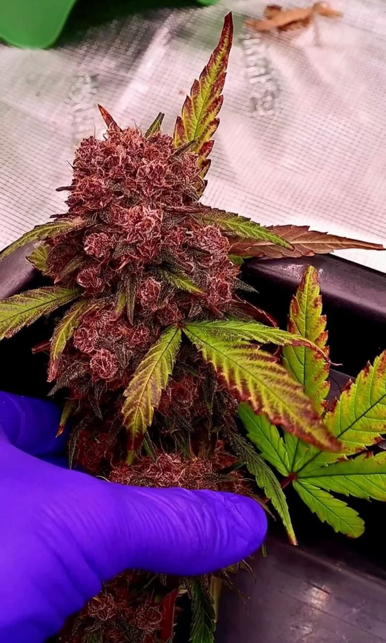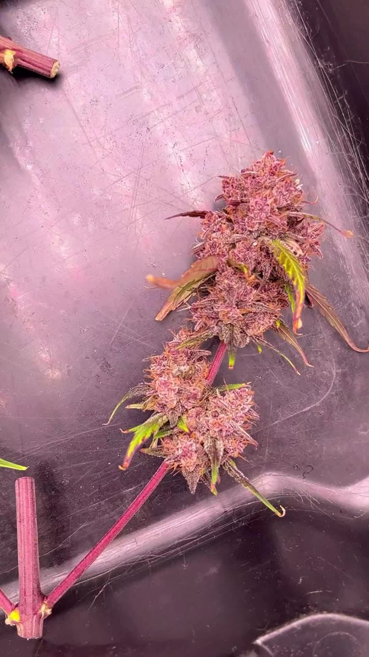 Cette variété a été un vrai plaisir à cultiver. Super facile et elle a supporté pas mal de maladresses de ma part pendant la culture. Dès le passage en floraison, c'est impressionnant à quelle vitesse elles commencent à gonfler. C'est comme si le turbo s'activait car on peut voir la croissance au quotidien. La couleur des fleurs est d'un violet profond, couvertes de givre et de pistils rouges, ce qui les rend vraiment photogéniques. Le poids frais de ces 3 plantes a atteint 870g. Leur odeur est sucrée, fruitée, avec des notes florales. Au final, c'est sûr, bon jardinage à tous.