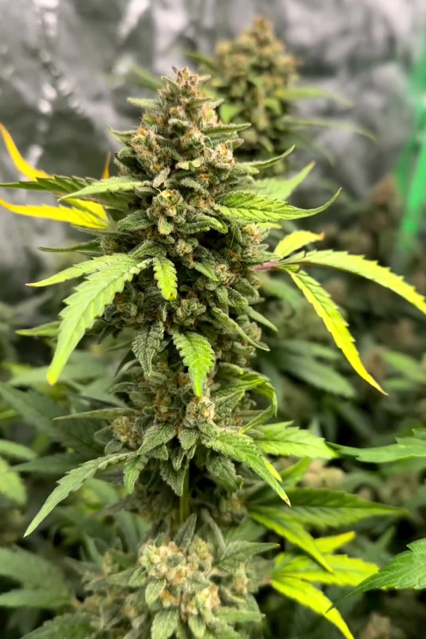 Grâce au mélange génétique fin, cette variété n'a pas peur de montrer sa vigueur hybride et peut produire jusqu'à 500gr/m2 de têtes de première qualité. Cette variété de grande taille pousse de manière très robuste, avec une tige solide et des branches latérales qui donnent à cette variété une apparence trapue tout en atteignant jusqu'à 120cm. La haute tige principale et les longues branches latérales font pousser plusieurs sites de floraison sur la partie supérieure avec pas trop de petites feuilles en éventail avec quelques doigts.