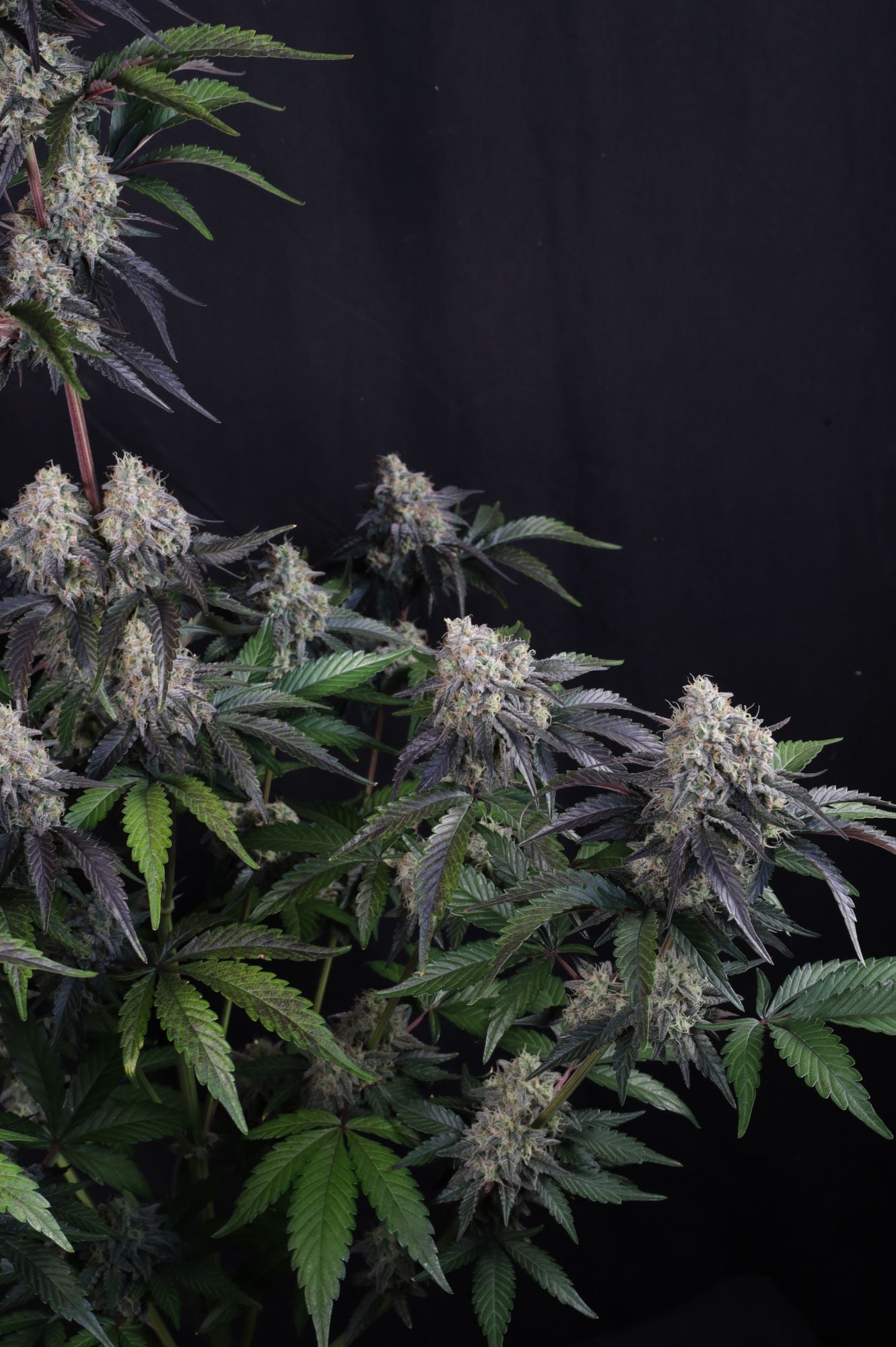 Tijekom testiranja uočena su dva različita fenotipa, oba s istim terpenskim profilom ali s različitim bojama. Prvi fenotip pokazuje pretežno zelene cvjetove sa suptilnim ljubičastim ili ružičastim nijansama, dok lišće ostaje zeleno tijekom cijelog ciklusa. Drugi fenotip donosi izraženiji kontrast: cvjetovi su uglavnom zeleni s ljubičastim akcentima, ali lišće dobiva duboko crne tonove, dajući biljci upečatljiv, premium izgled koji se ističe u svakoj prostoriji za uzgoj.
