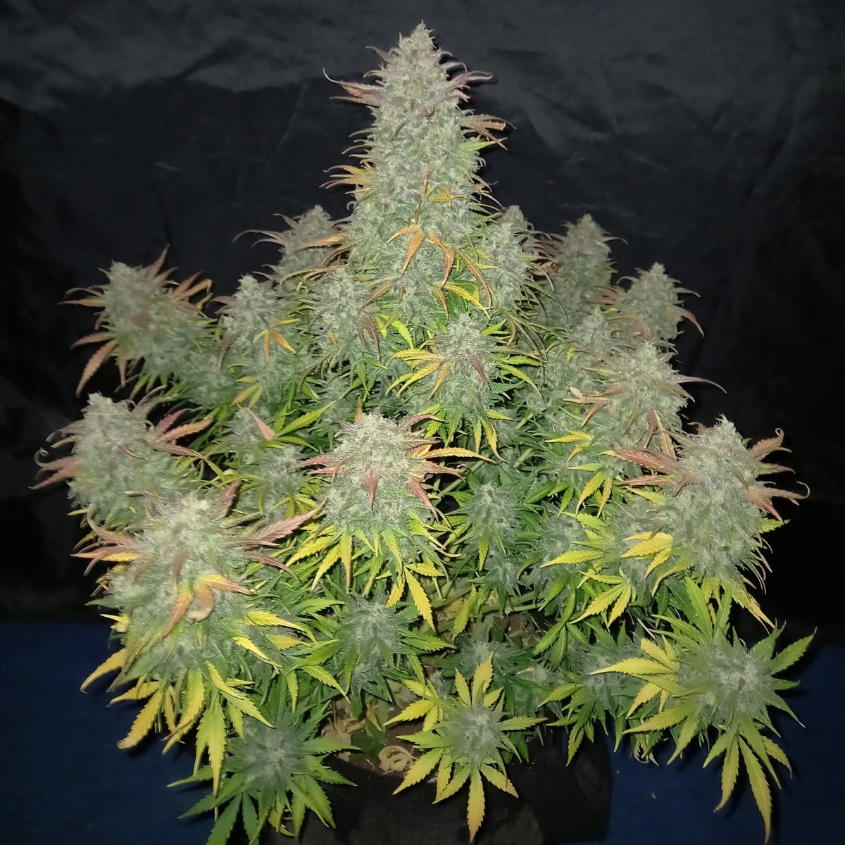 I'm growing this strain for the first time, and to my surprise, the first seed turned out to be photoperiod. Despite that, the plant in the picture — 45 days into flowering — is doing really well, especially in lateral growth. It reached 86 cm in height and seems like it will yield nicely, even though the buds are still relatively small. Rating: 4 stars due to the unexpected surprise (possibly a mixed or unstable batch).