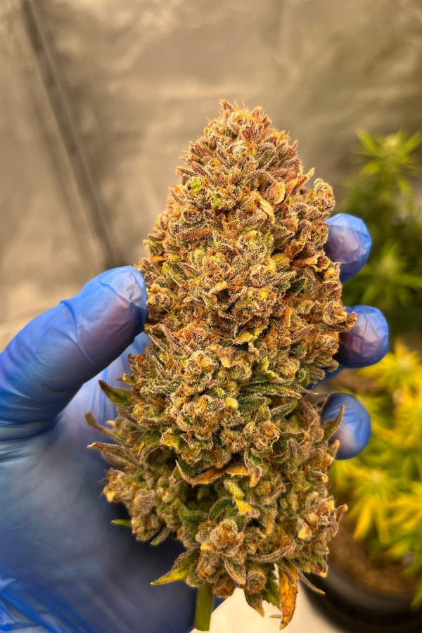 Look forward to a main stem that can reach an average of 130cm surrounded by several long and thick side branches that can get almost as big as the main cola. A truly bushy variety that won’t be afraid to show its hybrid vigor. This strain grows large fan leaves with several thin fingers out of every internode, where you’ll also see rounded golf ball-sized nugs developing, finishing with an obelisk-shaped main bud at the top. An extraordinary yielder that will reward you with up to 550 gr/m2 of high-quality buds, the perfect choice for extractors seeking a first-rate resin producer.