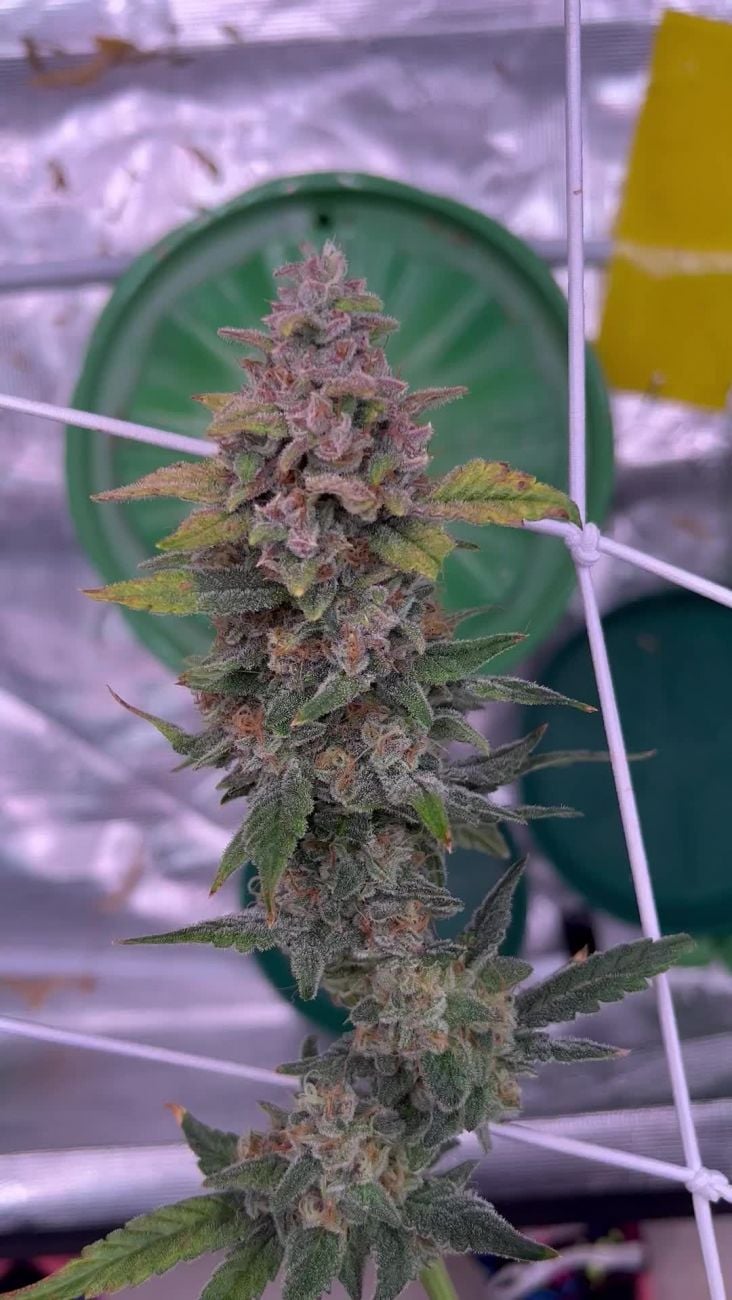 This was the strongest and most consistent strain for both phenos. A 1.5m Xmas tree structure on both. One green the other purple, both taste entirely different as if they could be different strains. The green was v dense and smells of sage and gas, the fade on the green was beautiful too. The purple was something in between the blackberry and lsd25 berry flavours. Was a very decent stoned effect high.