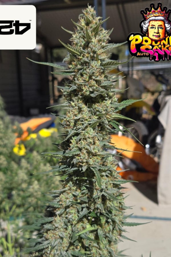 Esta variedade autoflorescente desenvolve nugs muito volumosos e densos com tons roxos claros e escuros, e belas folhas coloridas de açúcar que se transformam em belos tons de laranja e rosa na altura da colheita. Graças aos seus 28% de THC, a Pound Cake Auto™ produz uma camada de resina branca e cremosa que cheira a gelado de baunilha com avelã torrada e um xarope de frutos silvestres misturados: uma variedade verdadeiramente saborosa para os mais exigentes caçadores de sabores, pois esta variedade produz flores pesadas em resina e ricas em sabor.