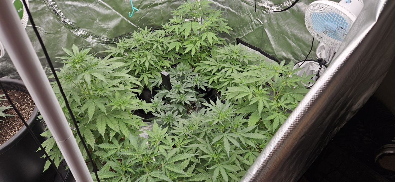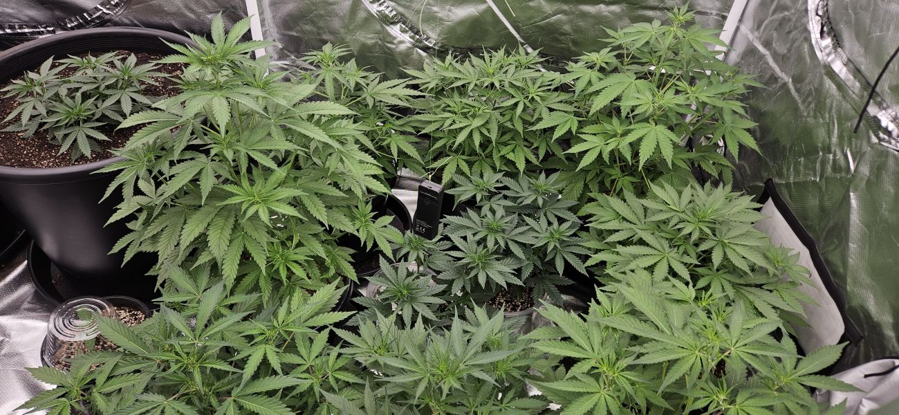 I'm growing this strain for the first time, and to my surprise, the first seed turned out to be photoperiod. Despite that, the plant in the picture — 45 days into flowering — is doing really well, especially in lateral growth. It reached 86 cm in height and seems like it will yield nicely, even though the buds are still relatively small.