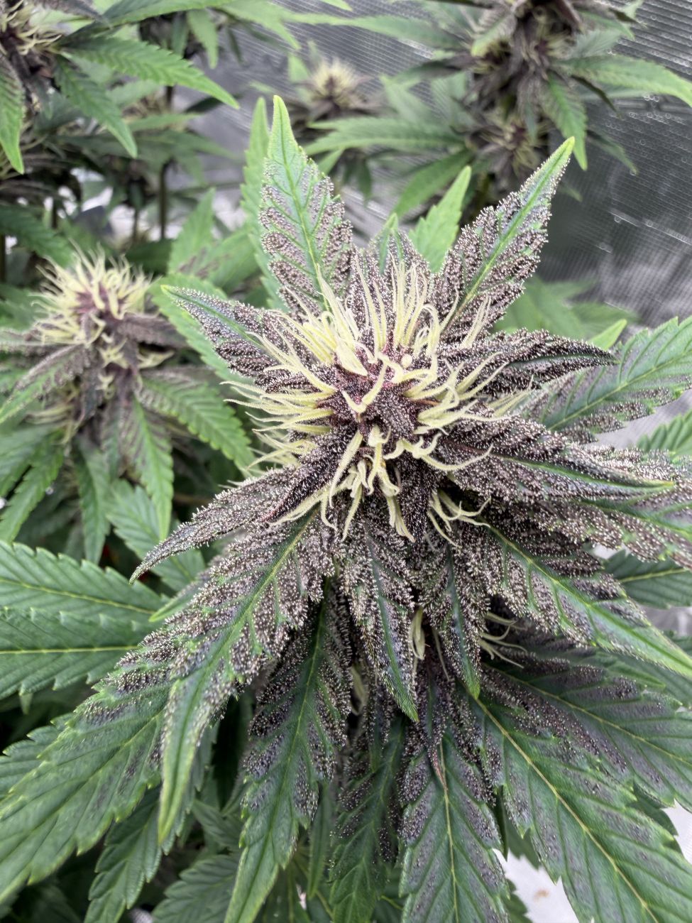 This strain was an absolute joy to grow. Super easy and took a lot of beating from my part.l during the grow. Once into flower it's amazing how fast they'll start swelling. Its like the turbo chargers kicked in as you should see daily growth. The colors of the flowers are a deep deep purple that are covered in frost and red hairs, so it makes them look picture perfect. The wet weight for these 3 came out to 870g. The smell they have is sweet,fruity, with hints floral to them. Over all Happy Growing for sure.