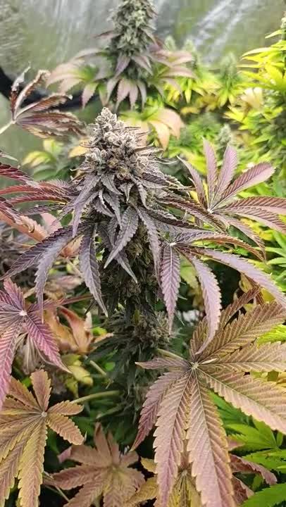 During flowering, Lemon Cherry Runtz begins to flex her true potential: heavy, resinous colas stack tightly from bottom to top with thick and dense buds, making for a highly productive and visually striking bush. With cooler finishing temperatures, she reveals a dramatic fade in her fan leaves, shifting into deep violet and cherry-purple hues that elevate her visual appeal to another level.