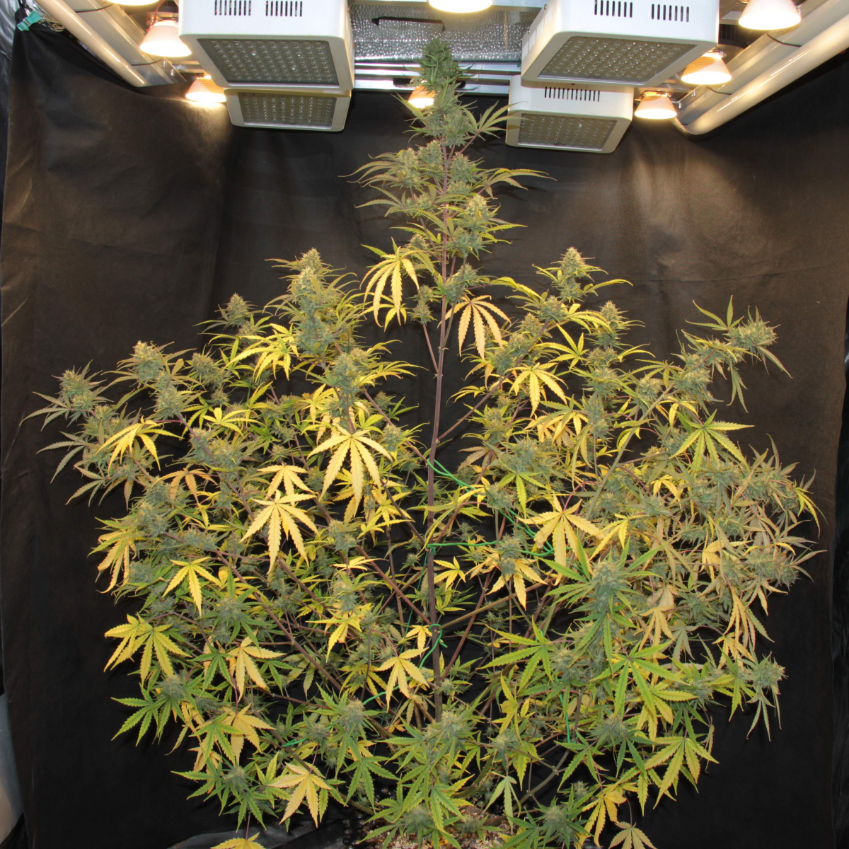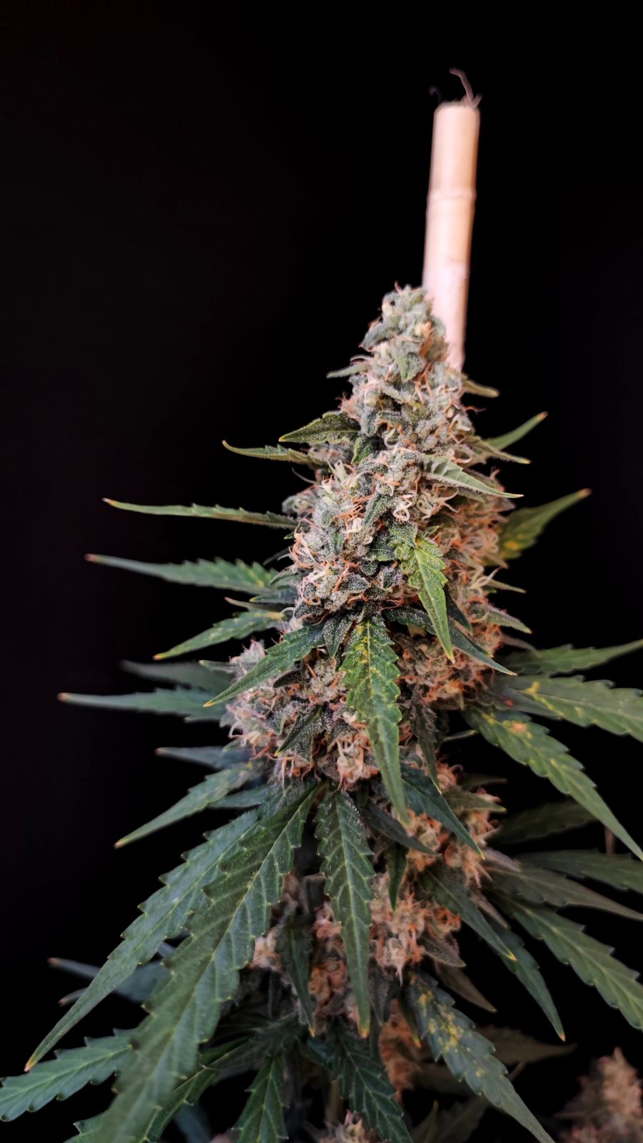 This strain will grow with a short and stout growth structure with thick Indica fan leaves and short internodal spacing. The buds will have a small compact appearance, and as this lady flowers the pistils will turn bright orange before fading to a dark brown. She will flower with one main cola with shorter side branches, filling out every internode with tight, greasy buds.