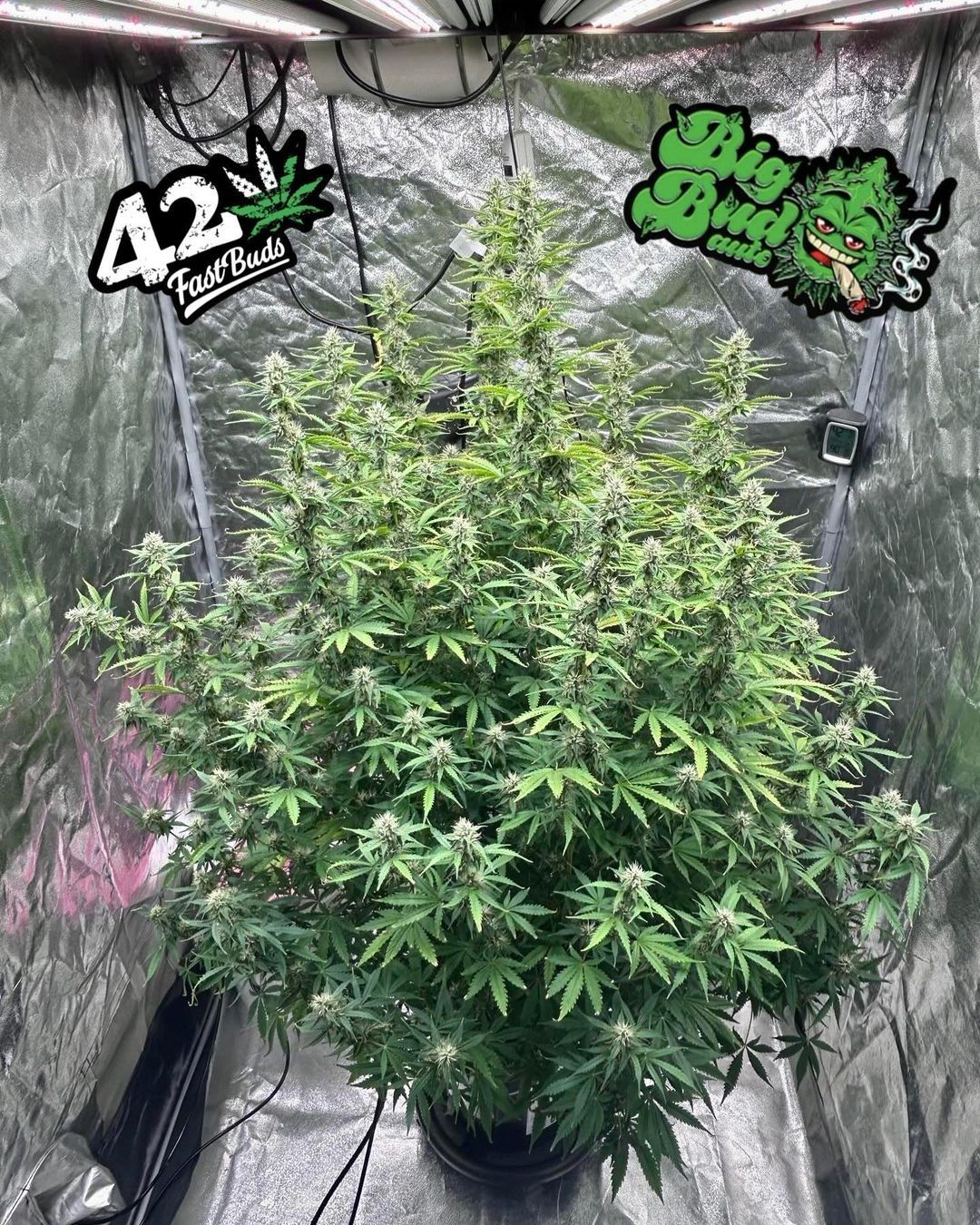 Big Bud Auto delivers exactly what it was bred to do; Expect large-sized dense and super thick nugs, typical of Indica-dominant strains, with long dark-brown hairs coming out of all the swollen yet small calyxes. This variety exhibits a good calyx to leaf ratio, meaning that the buds will stay big after trimming and almost all of the trichomes develop on the nugs; An exceptional strain for beginner growers who want to harvest premium buds without much maintenance or any extra effort.