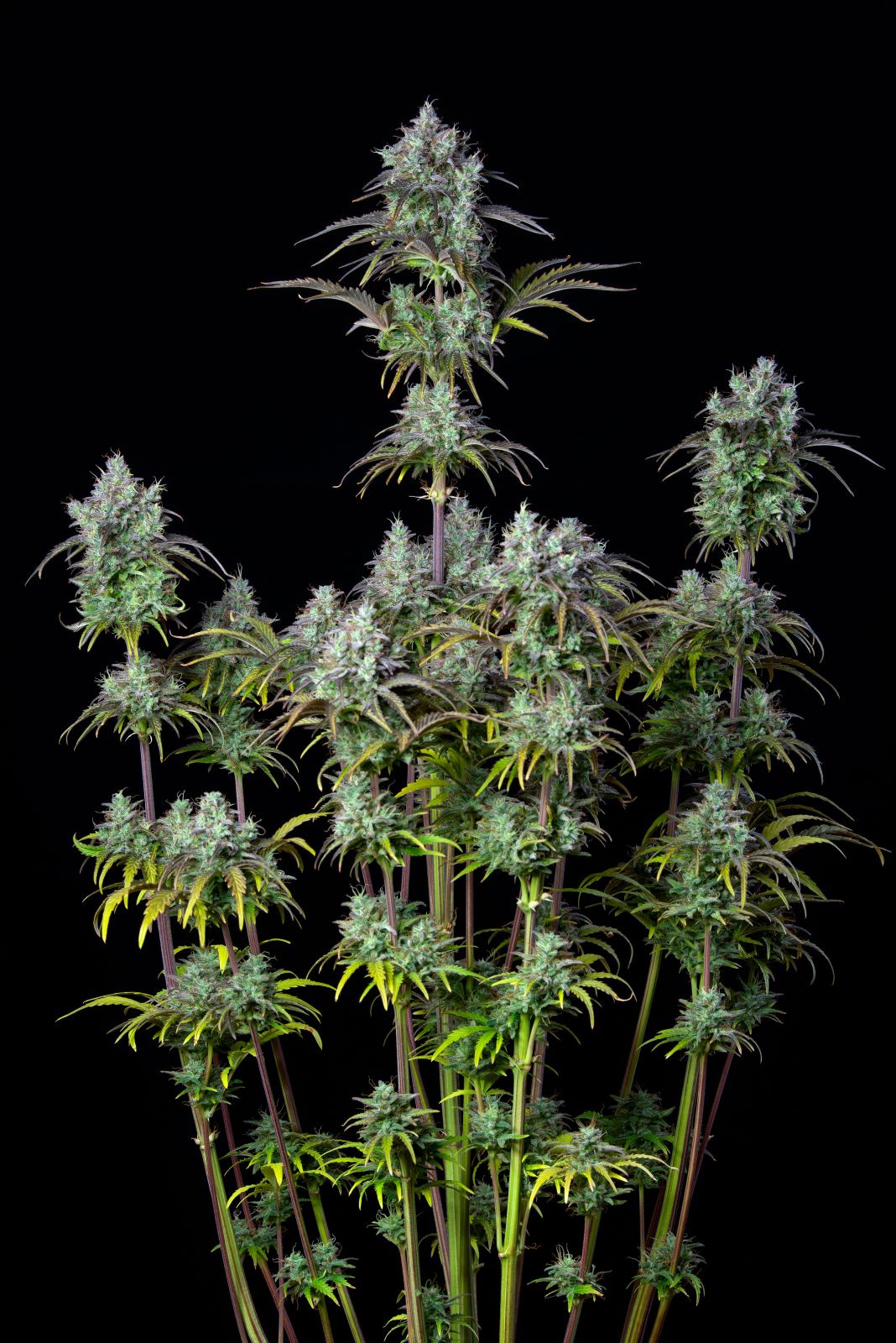 Thanks to the fine genetic mix, this strain won’t be afraid of showing its hybrid vigor and can produce up to 500gr/m2 of prime-quality buds; This large-sized variety grows really sturdy, with a solid stem and side branching that give this strain a stocky appearance while still reaching up to 120cm. The tall main stem and long side branches grow multiple flowering sites on the upper part with not too many small fan leaves with a few fingers.