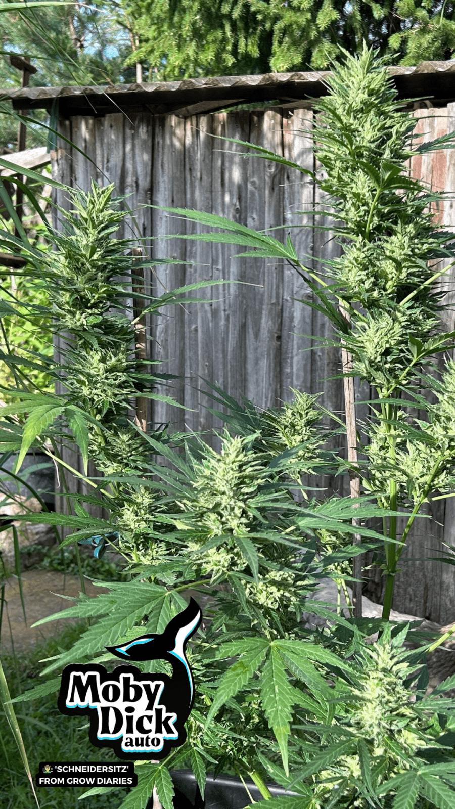 Moby Dick Auto grows long and big dark-green buds with even darker sugar leaves and long dark-orange hairs scattered all over. Expect really thick, dense flowers with a heavy coat of resin from head to toe that sparkles under the right lighting. The outstanding bag appeal comes hand-in-hand with a pleasing yet intriguing earth, lemony, and sweet floral aroma that will make your whole room smell like a Dutch coffee shop as soon as you break the buds open.