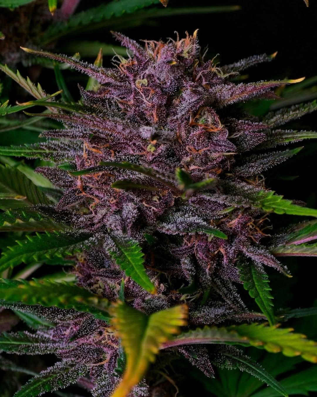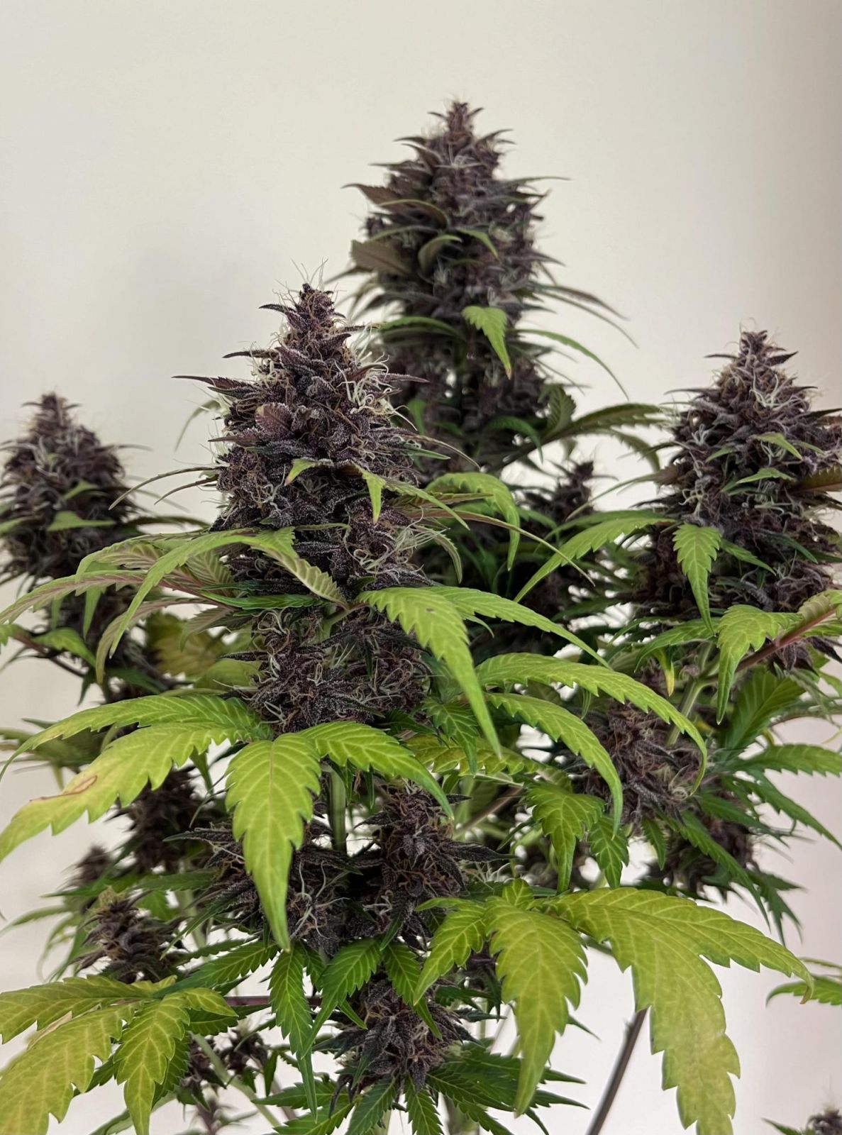 She grows quickly and easily, requiring minimal input while still producing dense, purple-streaked colas coated in frost. Cool temperatures will intensify her color, making her a great choice for outdoor growers in northern climates or indoor setups using LED and late-flower temperature drops. Despite her fast cycle, she yields generously and may need support during late bloom to hold up her heavy, resinous flowers.