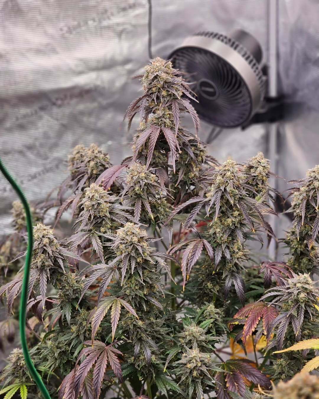 Started out very slow. 6 weeks of veg and 6 to 7 weeks of flower. She was very short and stout. Very close together and defoliated weekly. About week 7 she started her stretch. She reached her potential size about week 9 to 10. No issues throughout except due to our own mistakes with lack of feeding once or twice but still continued to flourish. She started thickening up around week 10 to 12 and started her fade. She was easy to grow and had minimal issues or concerns. Was a longer harvest than we've ever had but smokes great and is sticky icky! Has a very earthy and hint of sweet smell. Is a pretty strong hybrid hard to say which way its leaning more towards.