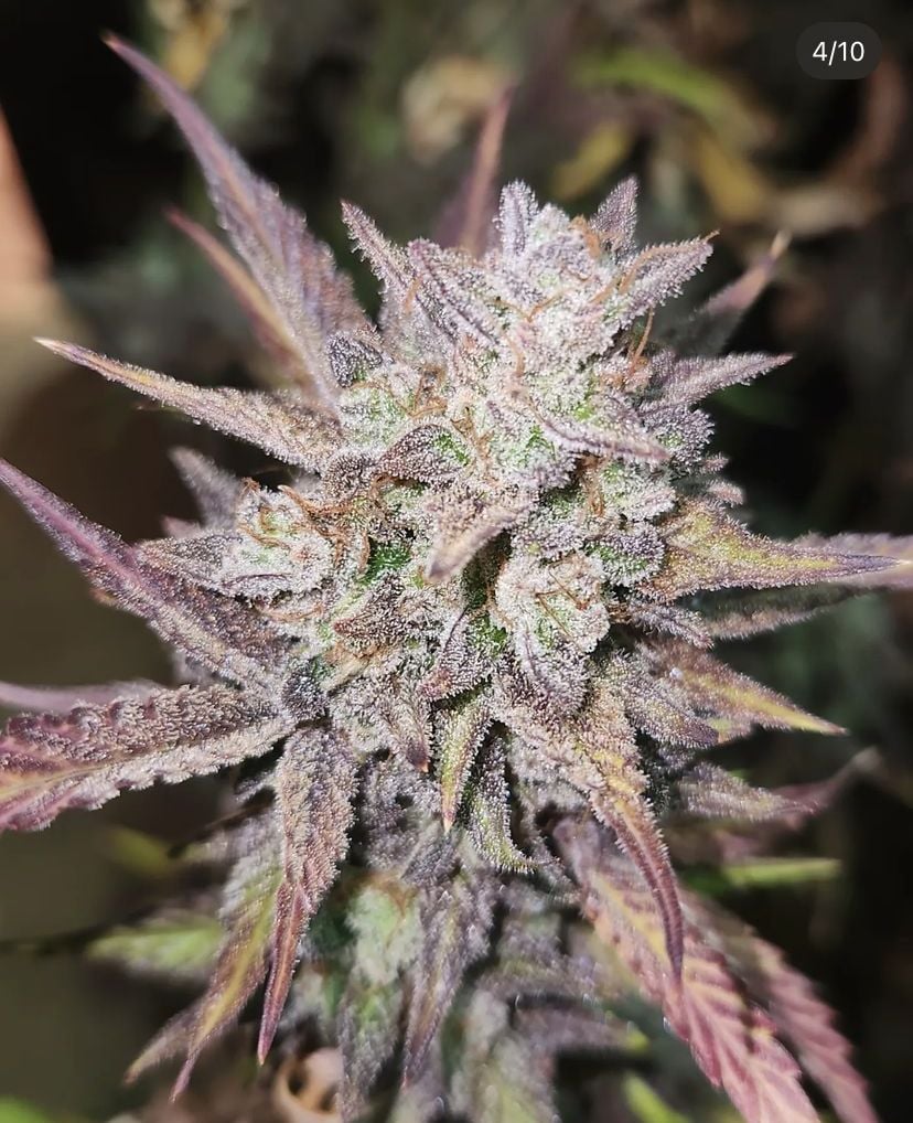 This super-producer can yield up to 550gr/m2 in 9-10 weeks and grows on the taller side, develops a main cola that reaches 120cm while being surrounded by sturdy long side branches that grow close together and give it a compact appearance despite its height. Due to the well-balanced mix, this variety develops a bushy foliage that can show a purple tint from early on and multiple flowering sites where the super frosty and dense ping pong-sized buds develop. It’s the perfect choice for extractors seeking first-class strains that offer unconventional yet captivating terpene profiles strains while delivering both in resin quality and quantity.