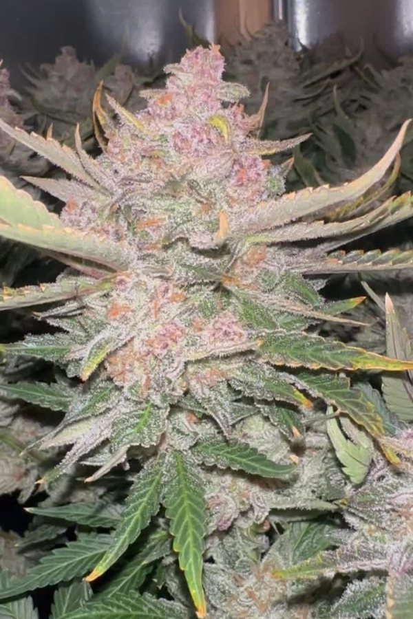 Frostbanger auto to supermocna, supermroźna, ciężka autokwitnąca odmiana indica o średniej zawartości THC 29,5%. Pozostaje kompaktowa, zaczyna kwitnąć w czwartym tygodniu i szybko produkuje umiarkowane zbiory gęstych, zbitych, nasączonych żywicą pąków, które mienią się jak świeży śnieg w lśniącej zimowej krainie czarów. Stworzona dla koneserów, którzy pragną produkcji trichomów na wyższym poziomie, Frostbanger Auto jest bardzo odporna, co oznacza, że jest łatwa w uprawie, niezależnie od tego, czy dopiero zaczynasz uprawiać zioło, czy masz wieloletnie doświadczenie. Jej kompaktowa struktura jest idealna do ciasnych przestrzeni wewnętrznych, gdzie osiągnie wysokość 70-120 cm. Pamiętaj tylko, że wilgotny, ostry zapach tej odmiany jest supermocny — co oznacza, że filtr węglowy jest koniecznością, aby zamaskować aromat w każdym pomieszczeniu uprawowym. Ta odmiana zaznaczy swoją obecność nawet, gdy będzie uprawiana na zewnątrz. Możesz spodziewać się obfitych zbiorów z tej piękności naszpikowanej trichomami, która jest znana z produkcji 450-550 gr/m2 wewnątrz i 60-200 gr/roślinę na zewnątrz. Palenie lśniących kwiatów Frostbanger wytwarza gładką, ultragęstą parę, która płynnie toczy się po podniebieniu ze słodkim, kremowym smakiem owoców, dostarczając niemal natychmiastowe uderzenie fali spokojnego relaksu, która osiada głęboko w ciele. Jest to idealna odmiana do użytku wieczornego, relaksu pod koniec dnia lub po prostu do doświadczania spokojnej fizycznej błogości i nieograniczonego spokojnego stanu umysłu. Zoptymalizowana pod kątem horrendalnej produkcji trichomów i pokryta tak grubą warstwą szronu, że pąki są ledwo widoczne — to przyszłość mocno uderzających, wysokożywicznych autokwitnących odmian.