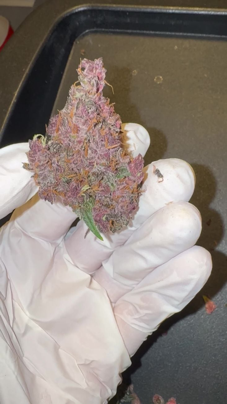 Perfection in bud form. Banana Purple Punch buds boast bright-orange hairs and a beautiful mix of purple, pink, and magenta hues that get completely covered in trichomes by harvest time. The medium-sized buds grow extremely dense and stacked on top of each other, making the main cola and side branches look like the tallest purple skyscraper you’ve ever seen. The mouth-watering tropical fruit smell will mesmerize your nostrils before you can even break them open, a truly exceptional strain for those looking to make the tastiest hash and extracts.