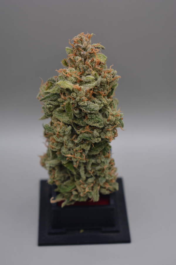 The ping-pong ball-sized buds grow mostly light-green with dark-green hues and sometimes exhibiting pink highlights that give the buds a hypnotizing appearance and reek of a sweet fruit cocktail with a strong earthy aroma. Thanks to the insane trichome production, it looks like there are trichomes growing on top of trichomes, making the buds look almost fluffy and giving them that sticky look every commercial grower seeks after.