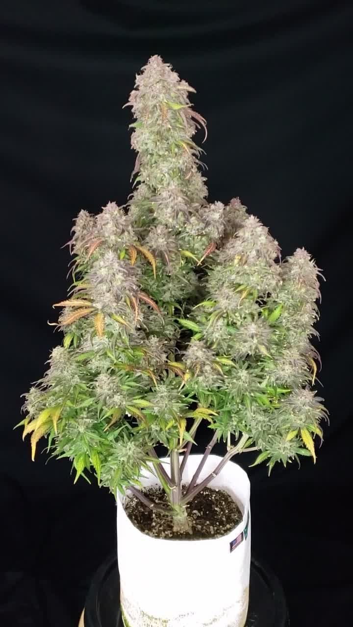 Growing up to 110cm, this strain develops a typical Indica structure but slightly taller and longer internodes while producing yields of 500gr/m2. As soon as your plant starts growing you will see the wide fan leaves emerging from the thick stem and long side branches that will slowly start filling up with pointy rock-solid buds that are completely covered with a layer of resin and boast different colors all over as harvest time comes.