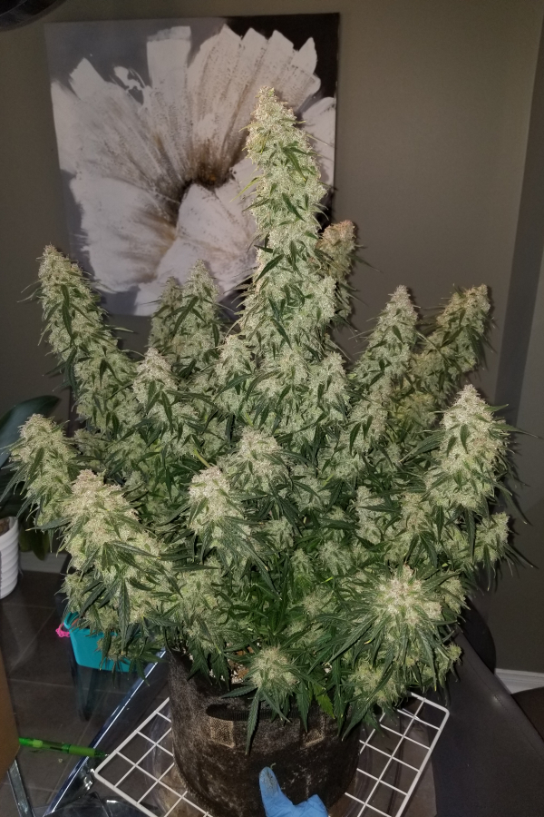 A vibrant rich green Christmas tree-like plant, with dense bud growths dotted around its stem and branches. Pineapple Express grows tall, sometimes reaching up to 1.4m in height! So if you want to let her grow to her full potential, give this baby the space she needs to stretch and expect full maturity around week 9-10.