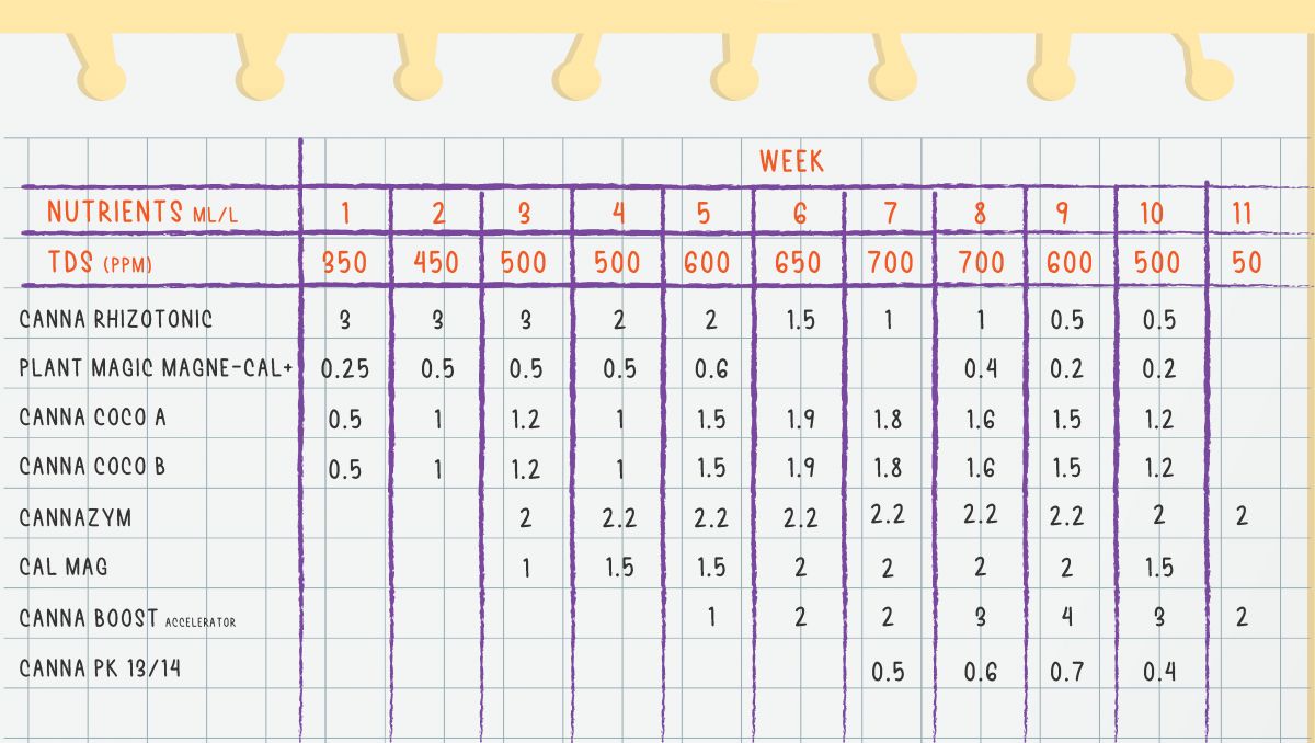 Die ersten beiden sind Bestandteile einer kompletten Nährstoffformel, die den Bedarf an allen essenziellen Elementen vom Samen bis zur Ernte deckt. Wie du vielleicht schon am Namen erraten hast, wurde diese Linie speziell für Kokos entwickelt. Dieser Nährboden kann für Neulinge ziemlich knifflig sein, denn du musst wissen, was du deinem Cannabis in welcher Dosierung zuführen musst. Bei CANNA ist all dieses Wissen bereits in der Formel enthalten. Befolge einfach den beiliegenden Plan (und beobachte, wie deine Pflanzen reagieren).