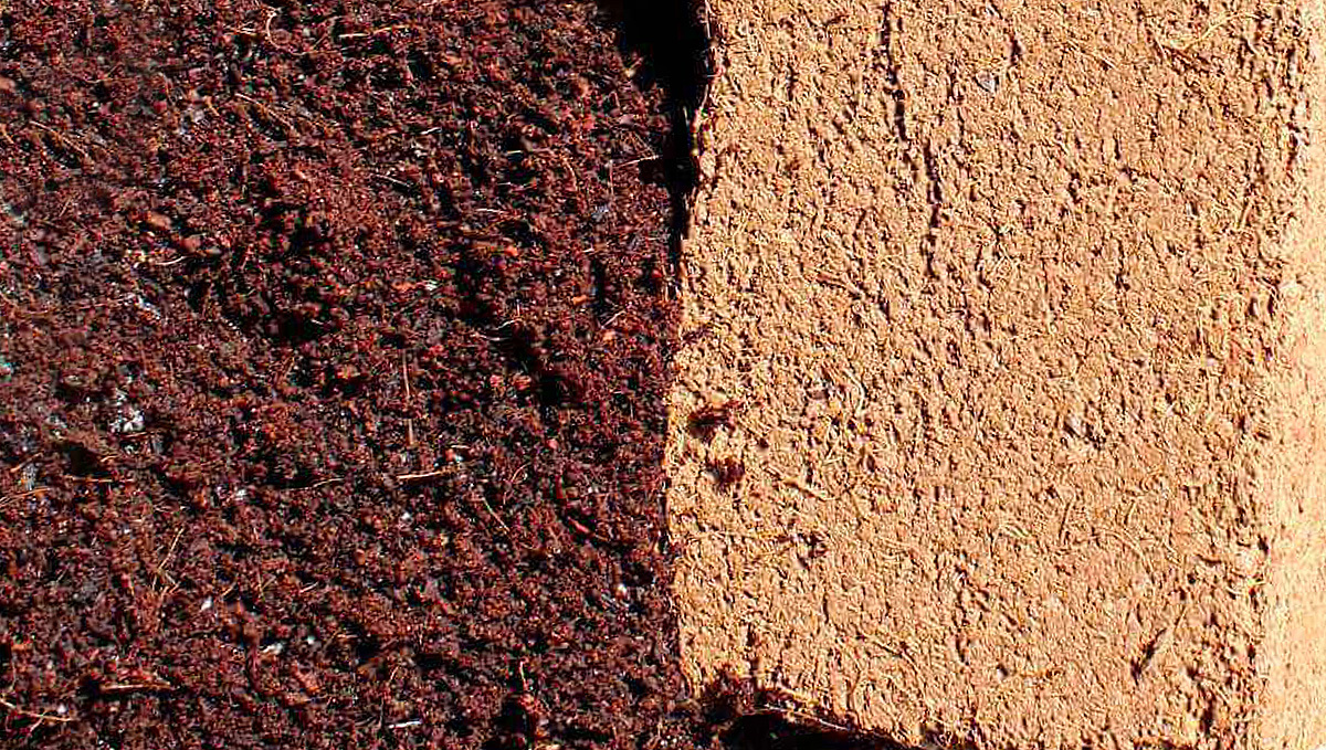 Normalerweise wollen die Leute, Kokosfasern als Klotz kaufen um Platz und ein paar Euro zu sparen. Es ist billiger, weil man ein bisschen Arbeit hat, bevor man sie benutzt, und es spart Platz, weil sie zu einem Ziegelstein gepresst sind.