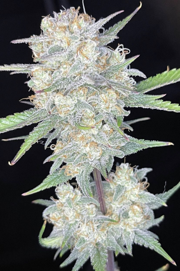 Freue dich auf einen Hauptstamm, der durchschnittlich 130 cm erreichen kann, umgeben von mehreren langen und dicken Seitenästen, die fast so groß werden können wie die Haupt-Cola. Eine wirklich buschige Sorte, die sich nicht scheut, ihre hybride Kraft zu zeigen. Diese Sorte bildet große Fächerblätter mit mehreren dünnen Fingern aus jedem Internodium aus, aus denen sich runde, golfballgroße Nugs entwickeln, die mit einem obeliskförmigen Hauptbud an der Spitze enden. Ein außergewöhnlicher Ertragsbringer, der dich mit bis zu 550 gr/m2 hochwertiger Buds belohnen wird, die perfekte Wahl für Extraktoren, die einen erstklassigen Harzproduzenten suchen.