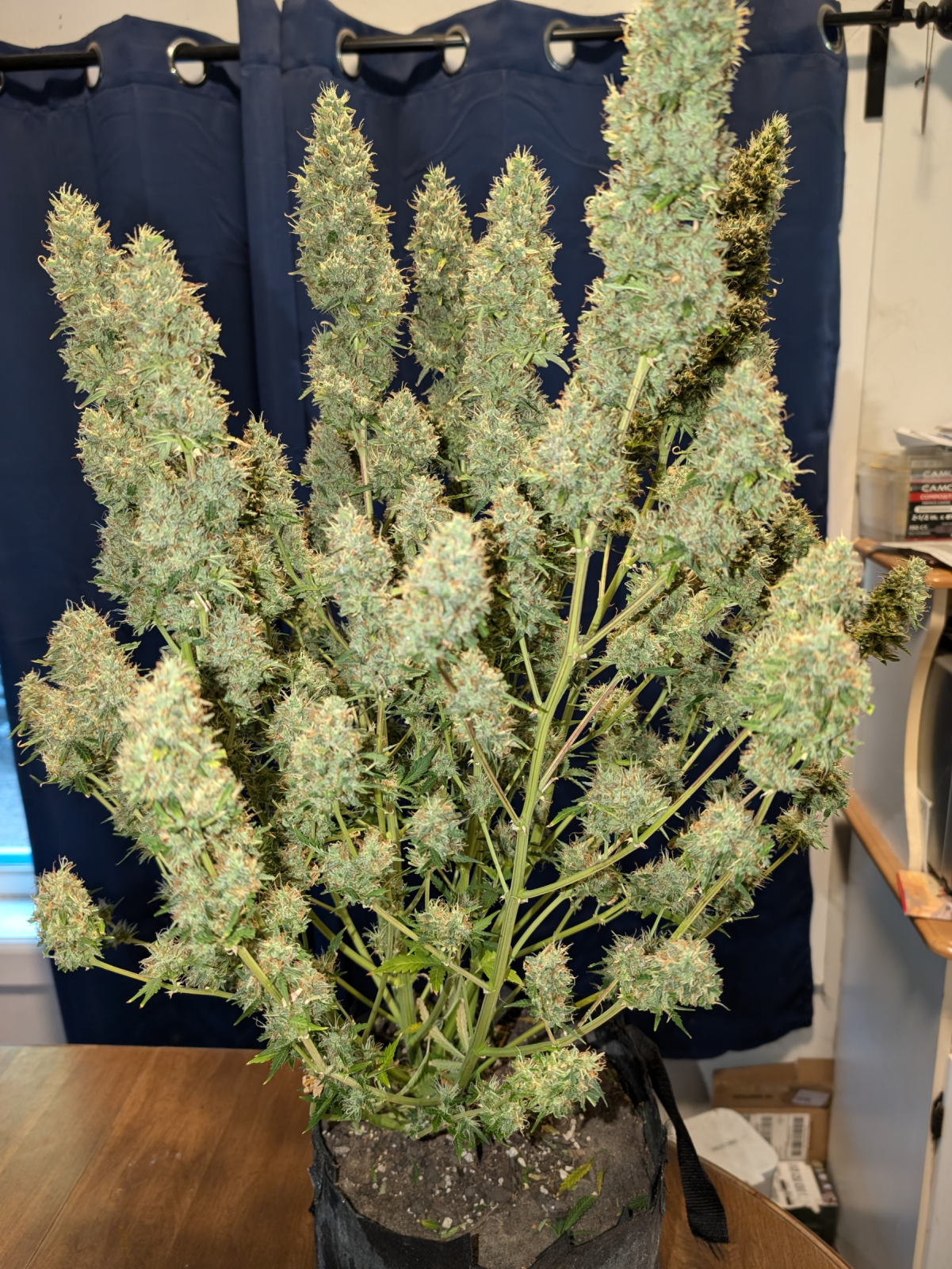 She grew well even with a bit of overwatering and too much Cal-Mag along being grown in a 3-gallon plastic bucket. Curing now and smells funky like a blend of ripe fruit.