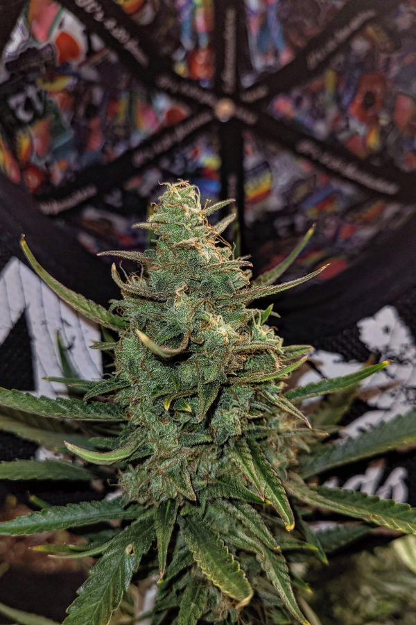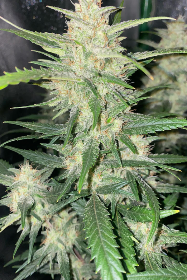 Les bourgeons sont plus denses que la plupart des hybrides à dominance Indica, ils développent un aspect pointu presque en forme de lance et des calices gonflés avec quelques fins poils orange clair espacés, autour d\'eux une épaisse couche de résine sur l\'ensemble des bourgeons qui leur donne une couleur blanchâtre-verte. Vous verrez beaucoup de feuilles avec des tas de trichomes qui vous donnent une idée de ce à quoi vous pouvez vous attendre avant même la récolte, ce qui signifie que cette variété frappe fort et qu\'elle convient aux consommateurs les plus exigeants.