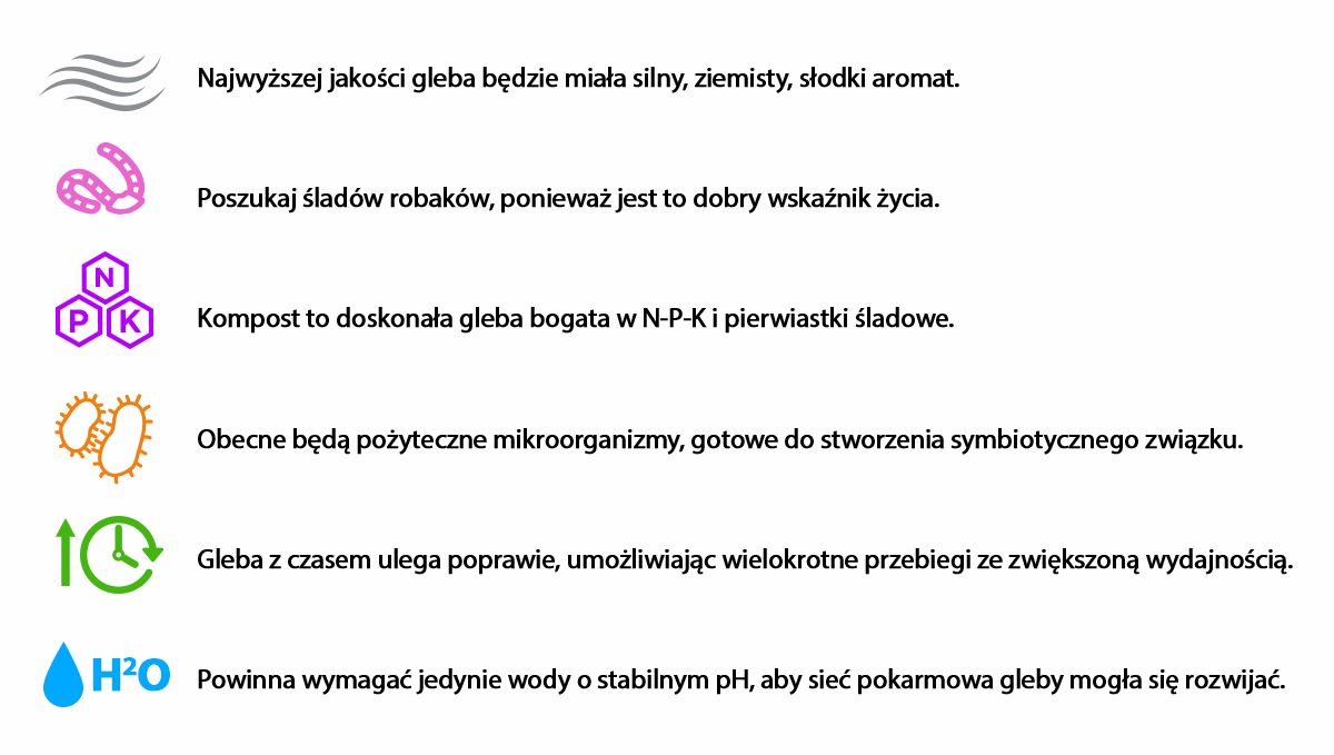 ❌ Zła gleba będzie miała nieprzyjemny zapach, co oznacza obecność złych bakterii, co powoduje, że pożywka ma niekorzystny stan kwaśny.