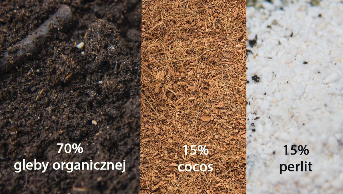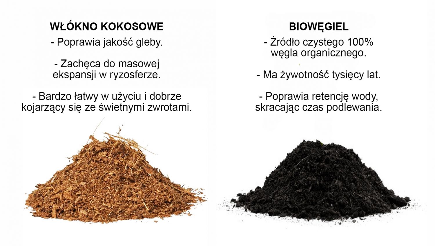 - 15% włókno kokosowe lub 15% biowęgiel lub 15% wermikulit