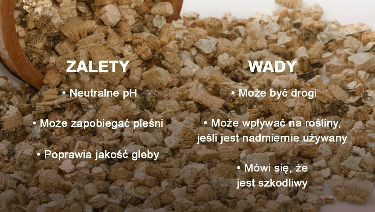 | Wermikulit | Stosowany w suchym środowisku pomaga utrzymać wilgotność gleby. | Poprawia jakość gleby i pomaga utrzymać jej wilgotność. |