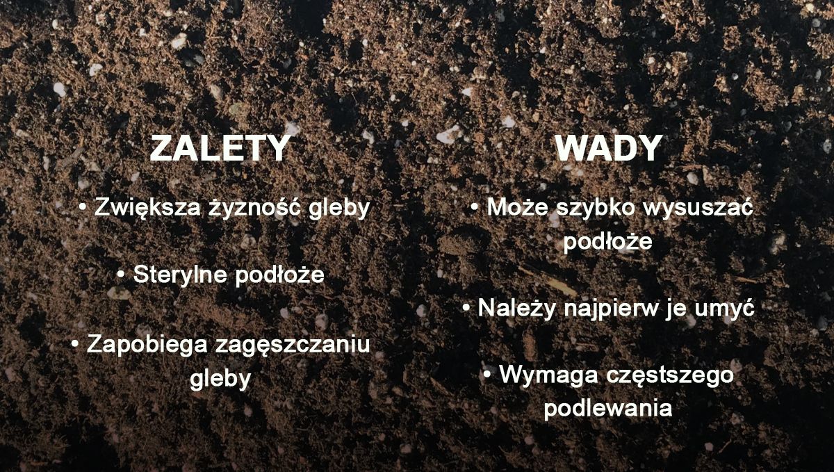 | Włókno Kokosowe | Stosować w suchym środowisku lub w celu poprawy jakości gleby. | Zatrzymuje wodę i pomaga uniknąć ugniatania gleby. |