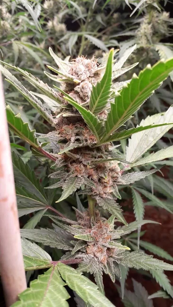 Świetna roślina! Naturalnie niska i zwarta. Jedna zakończyła kwitnienie w 70. dniu i jest już 10 dni po suszeniu. Pachnie marmoladą, a dym jest łagodny, ale mocny. Jeszcze nie dojrzewała wystarczająco długo, by w pełni oddać smak, ale już teraz jest dość cytrusowa/owocowa. Ta ze zdjęć jest na 75. dniu i prawie gotowa!