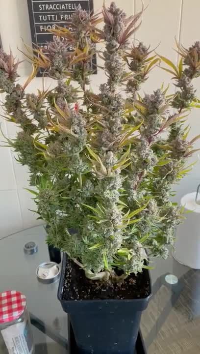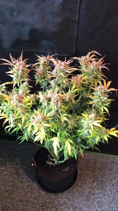 Ładnie proporcjonalna roślina o wysokości około 1 m, która wyrosła w kształcie trofeum, z rzadkim ulistnieniem i szyszkowatymi topami. Zauważyłem, że jest trochę wrażliwa na nawozy i podlewanie, więc nie polecałbym tej odmiany totalnym początkującym. Mimo to roślina dobrze się rozwinęła i zachowała ten sam słodki aromat, który pojawia się już na początku kwitnienia – przepiękny zapach moim zdaniem. Wybarwienie na końcu było niesamowite, spędziłem dosłownie godziny podziwiając żywe żółcie i czerwienie kontrastujące z mroźnymi jasnozielonymi topami z różowymi krawędziami i listkami cukrowymi. Jeszcze nie próbowałem kwiatów, bo nadal się suszą, ale wątpię, żeby mnie zawiodły.