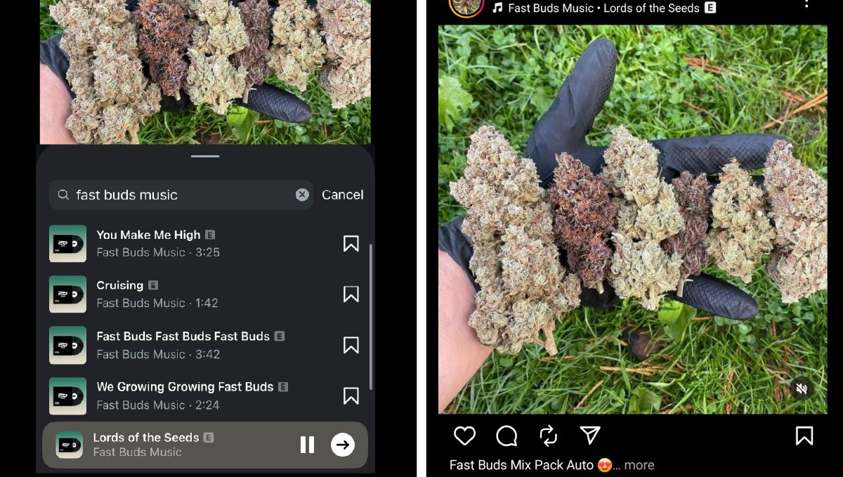 Ваши апдейты о грове, фото урожая и повседневные моменты теперь можно сопровождать официальным саундтреком Fast Buds. Просто найдите Fast Buds Music в музыкальной библиотеке Instagram и добавьте нужную атмосферу своему контенту.